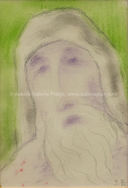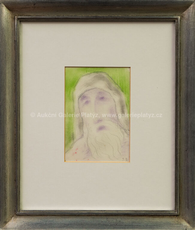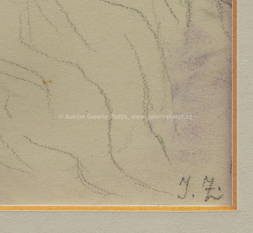 kombinovaná technika, pastel/tužka/papír, rozměr ve výřezu 15 x 10 cm, značeno vpravo dole, paspartováno, zaskleno, rámováno
