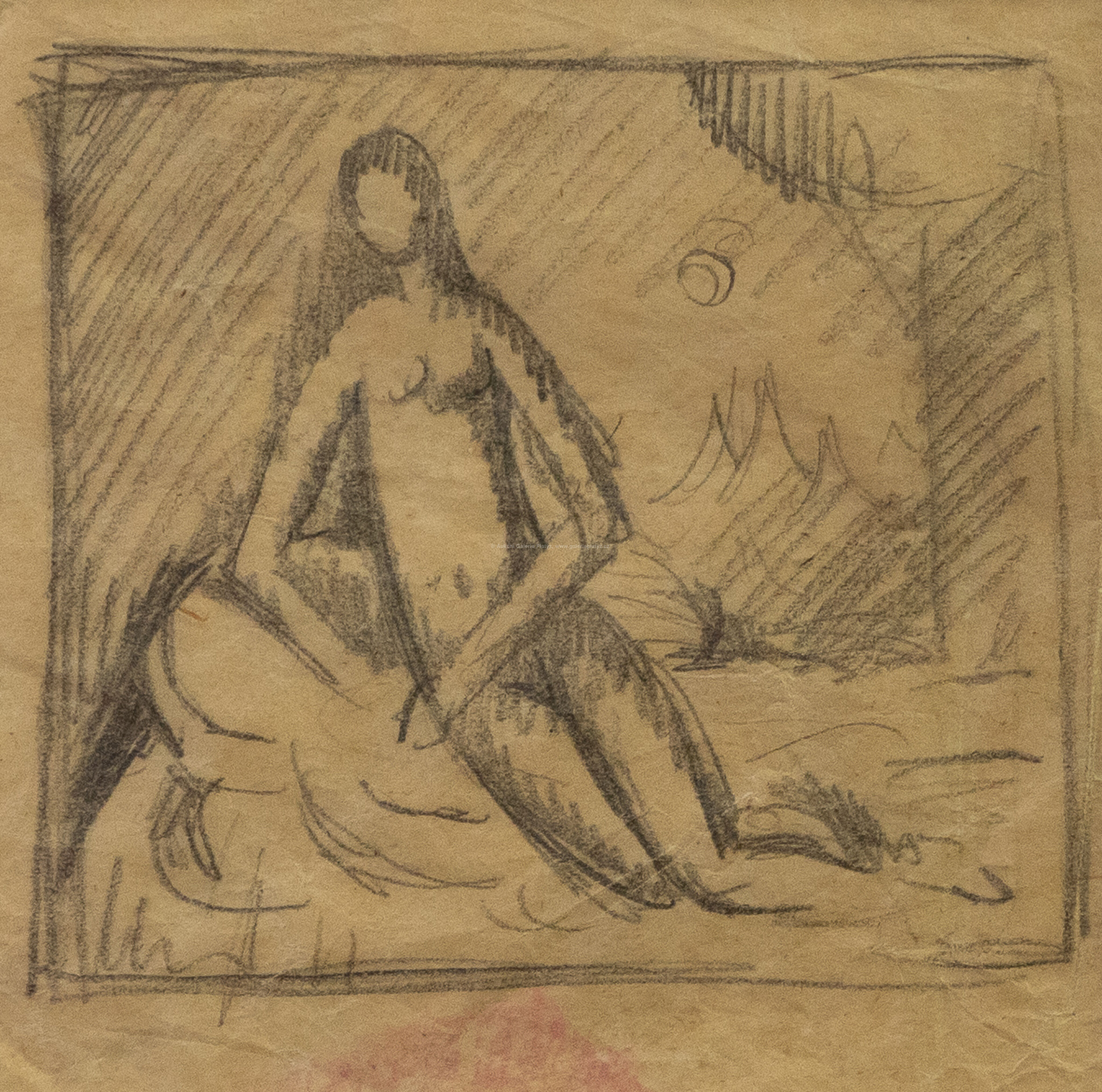 kresba tužkou/papír, rozměr ve výřezu 9 x 9,5 cm, neznačeno, paspartováno, z pozůstalosti blízké přítelkyně Jana Zrzavého, paní Ely Kadlecové