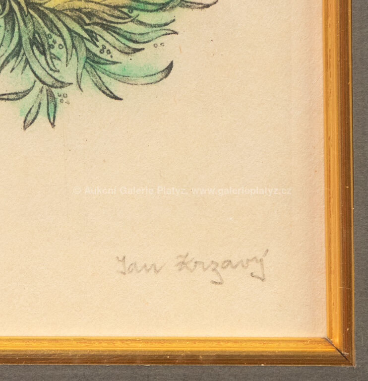 kolorovaná hollarotypie/papír, rozměr ve výřezu 10 x 8,5 cm, značeno vpravo dole, paspartováno, zaskleno, rámováno