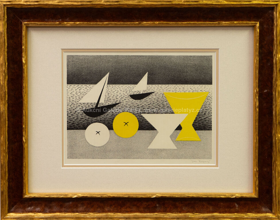 barevná litografie/papír, rozměr ve výřezu 19,5 x 26 cm, značeno vpravo dole, paspartováno, zaskleno, rámováno
