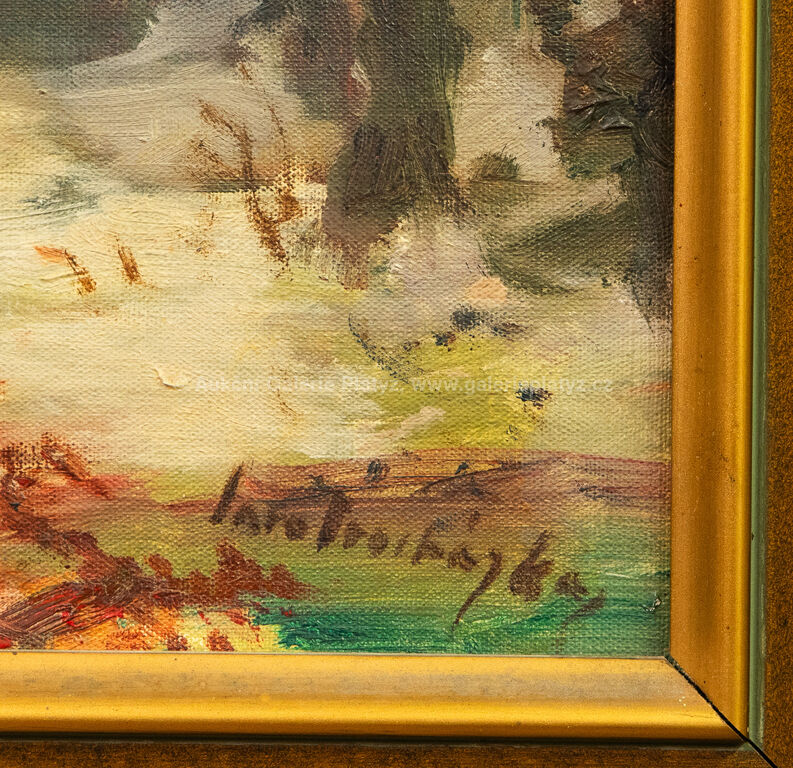 olej/plátno, rozměr 35 x 45 cm, značeno vpravo dole, rámováno, oděrky na rámu
