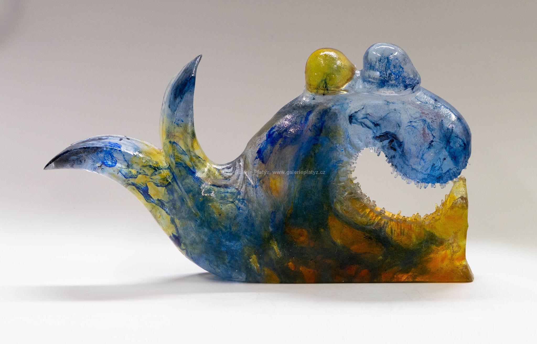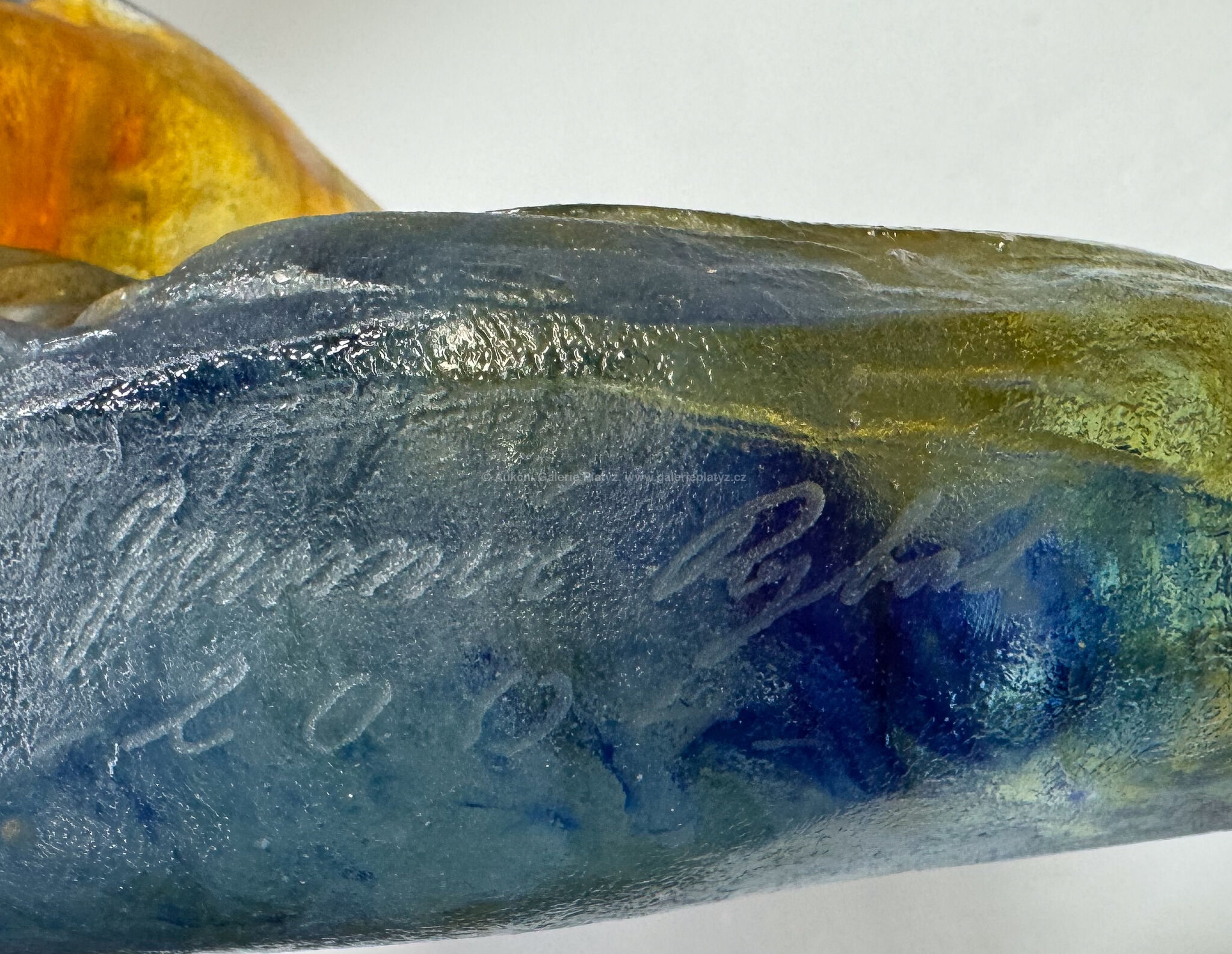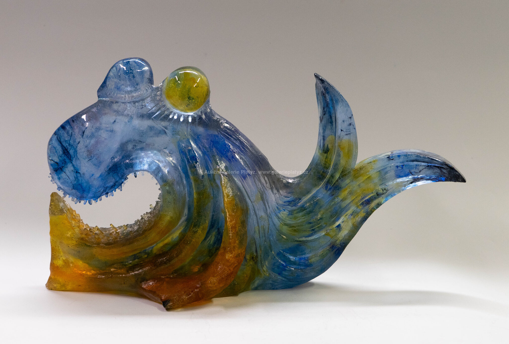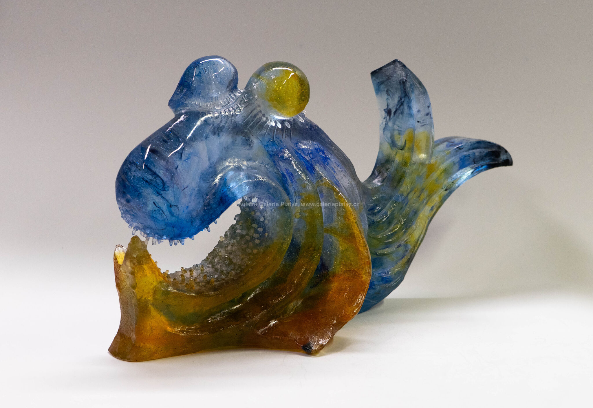 skleněná tavená plastika, broušená, leštěná, rozměr 24 x 43 x 12,5 cm, značeno a datováno ve spodní části