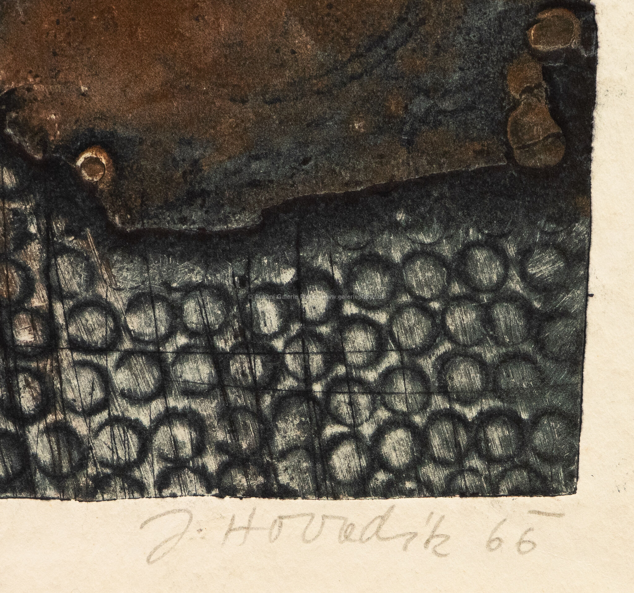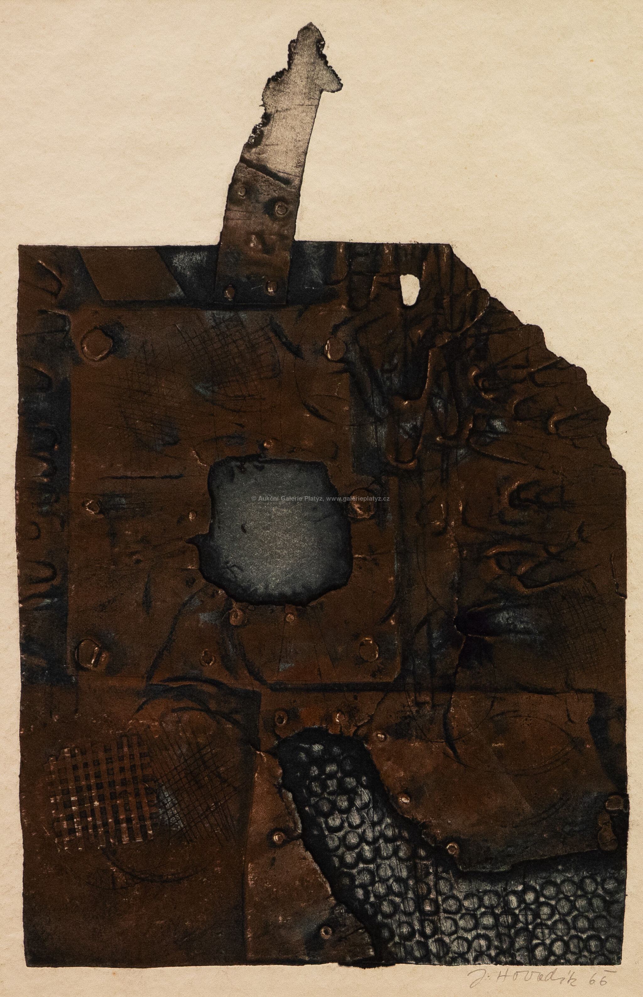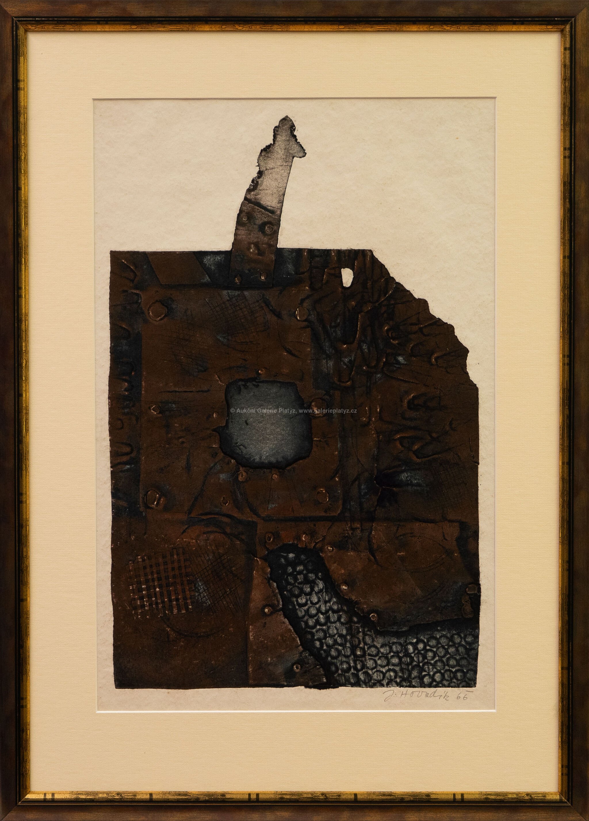 strukturální grafika/papír, rozměr ve výřezu 51,5 x 33,5 cm, značeno a datováno vpravo dole, paspartováno, zaskleno muzeálním sklem, rámováno