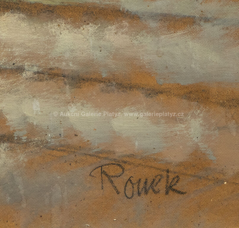 olej/karton, rozměr 49 x 65 cm, značeno vpravo dole, rámováno, poškozený rám, na několika místech drobné oděrky v malbě, karton po obvodu potřen barvou rámu