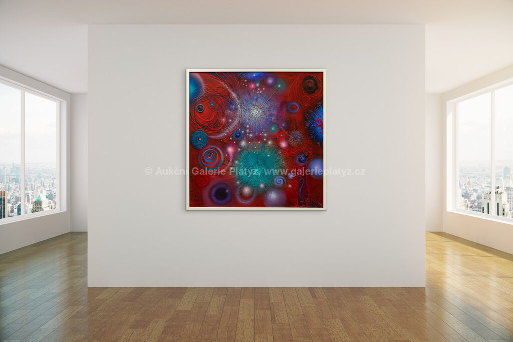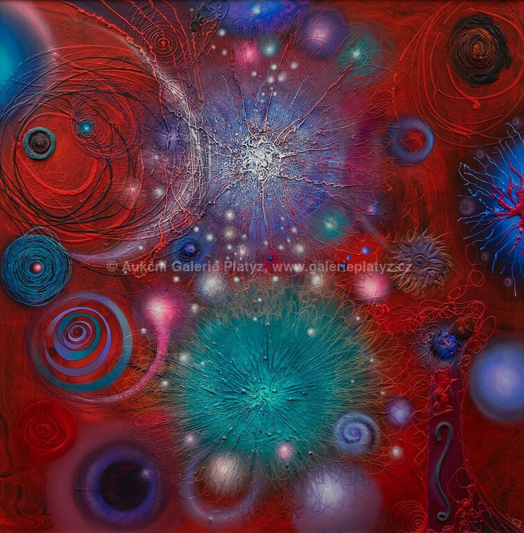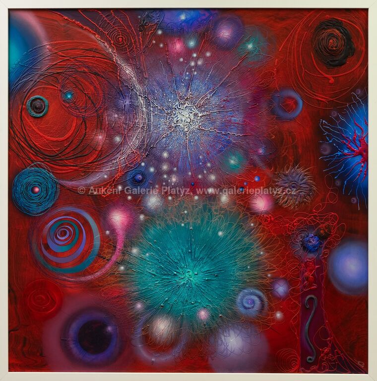 kombinovaná technika, strukturální malba, olej/akryl/sololit, rozměr 103 x 102 cm (VELKÝ FORMÁT), značeno a datováno vpravo dole, rámováno