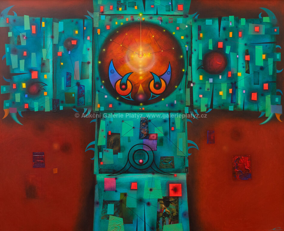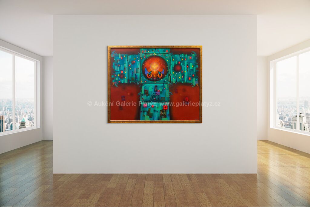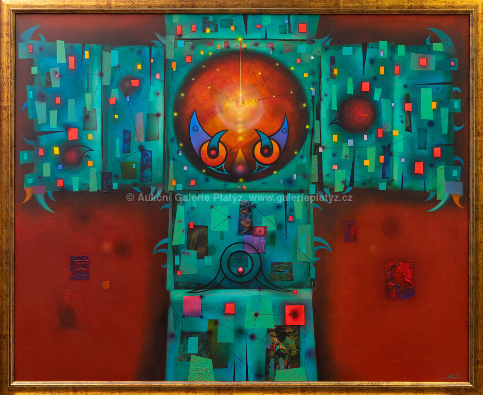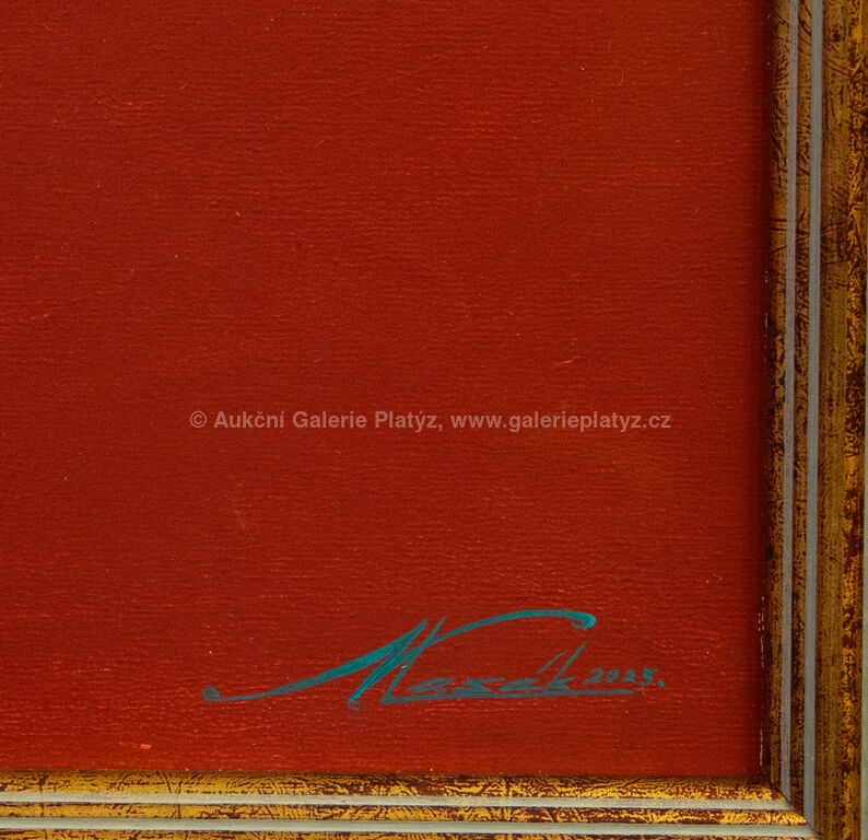 kombinovaná technika, olej/akryl/sololit, rozměr 85 x 105 cm (VELKÝ FORMÁT), značeno a datováno vpravo dole, rámováno