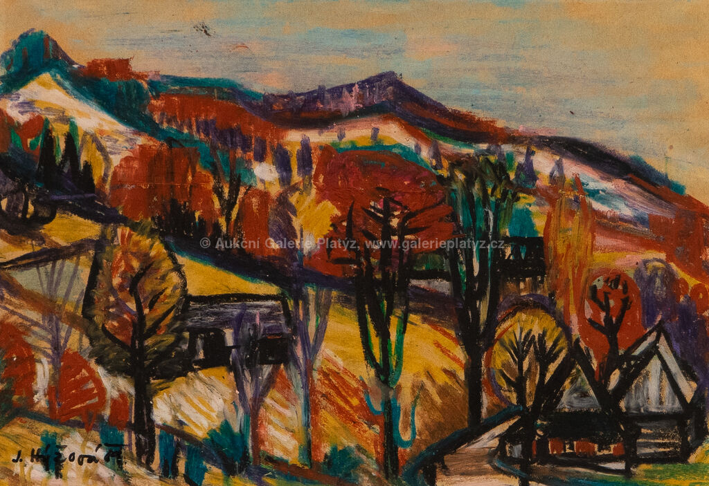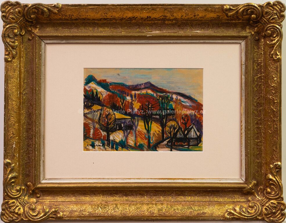 pastel/papír, rozměr ve výřezu 20 x 29 cm, značeno a datováno vlevo dole, paspartováno, zaskleno muzeálním sklem, rámováno, oděrky na rámu