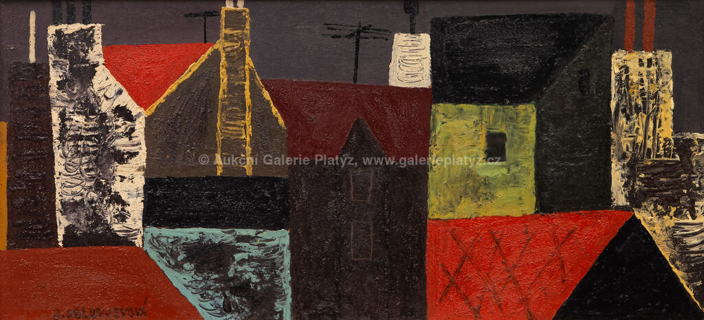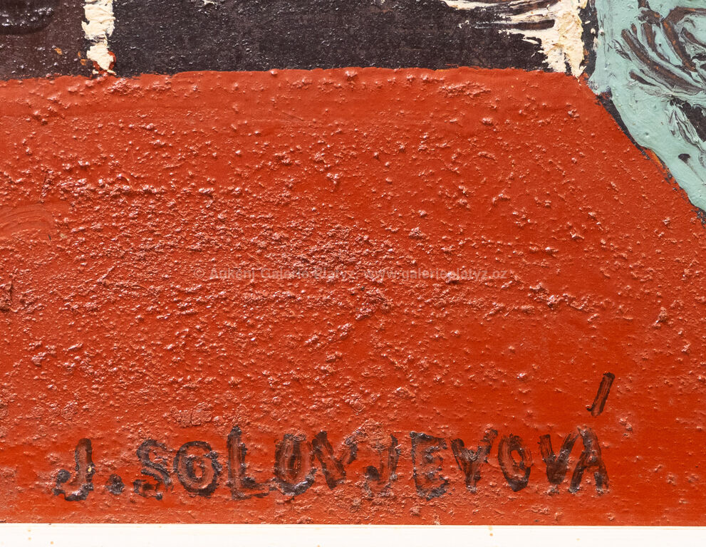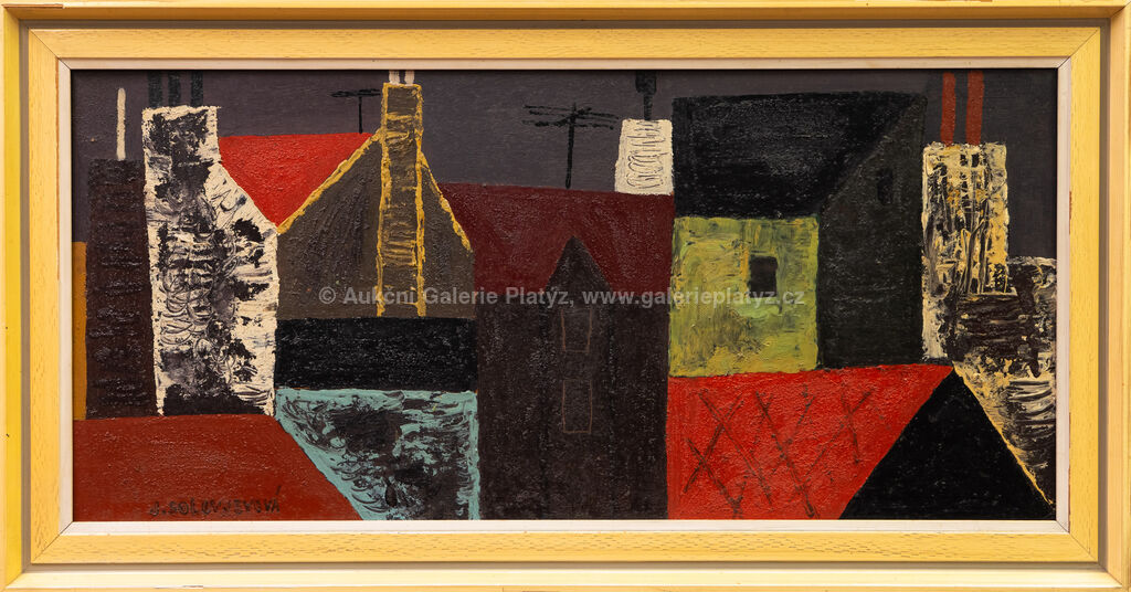 olej/sololit, rozměr 39,5 x 84,5 cm, značeno vlevo dole, rámováno, poškozený rám