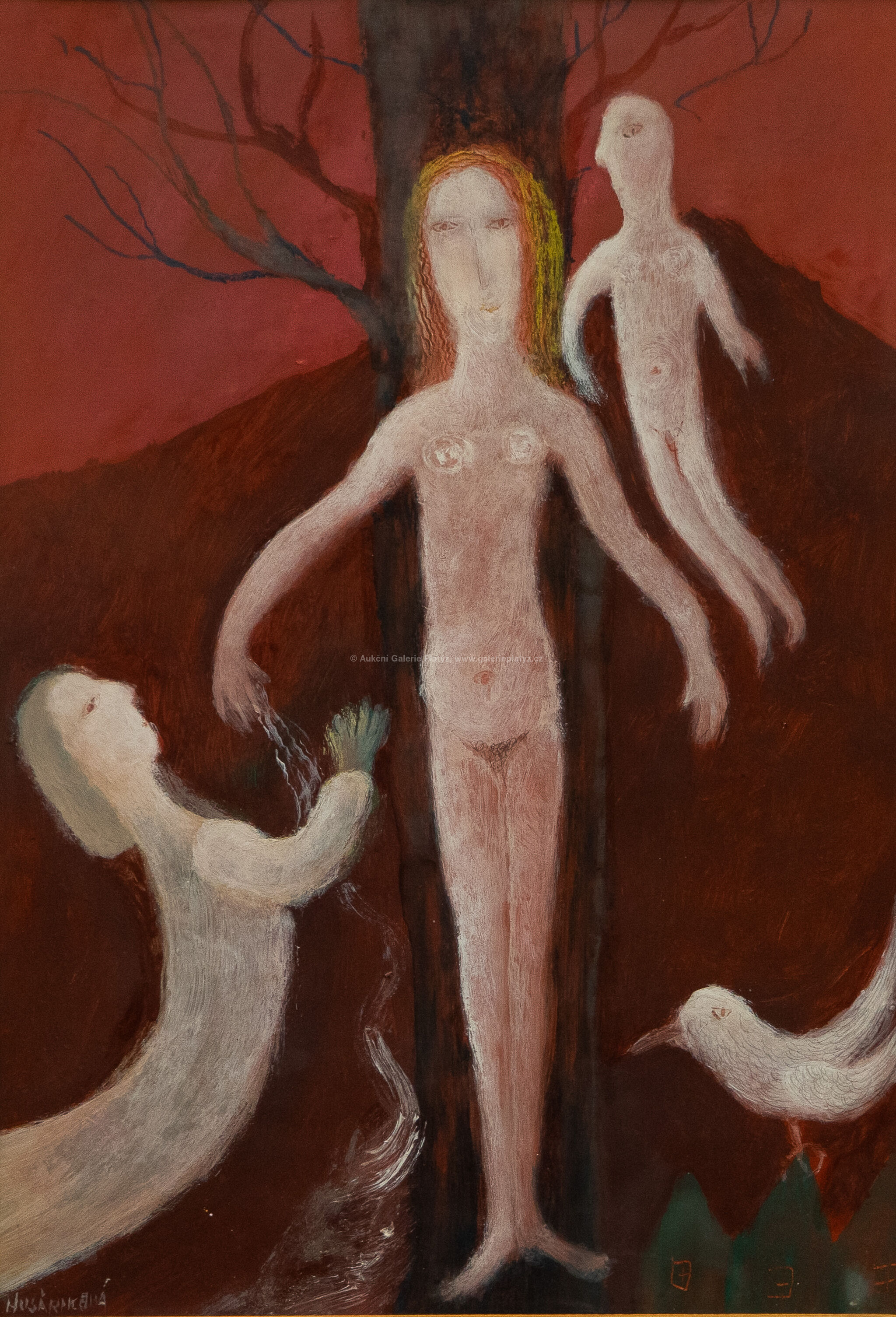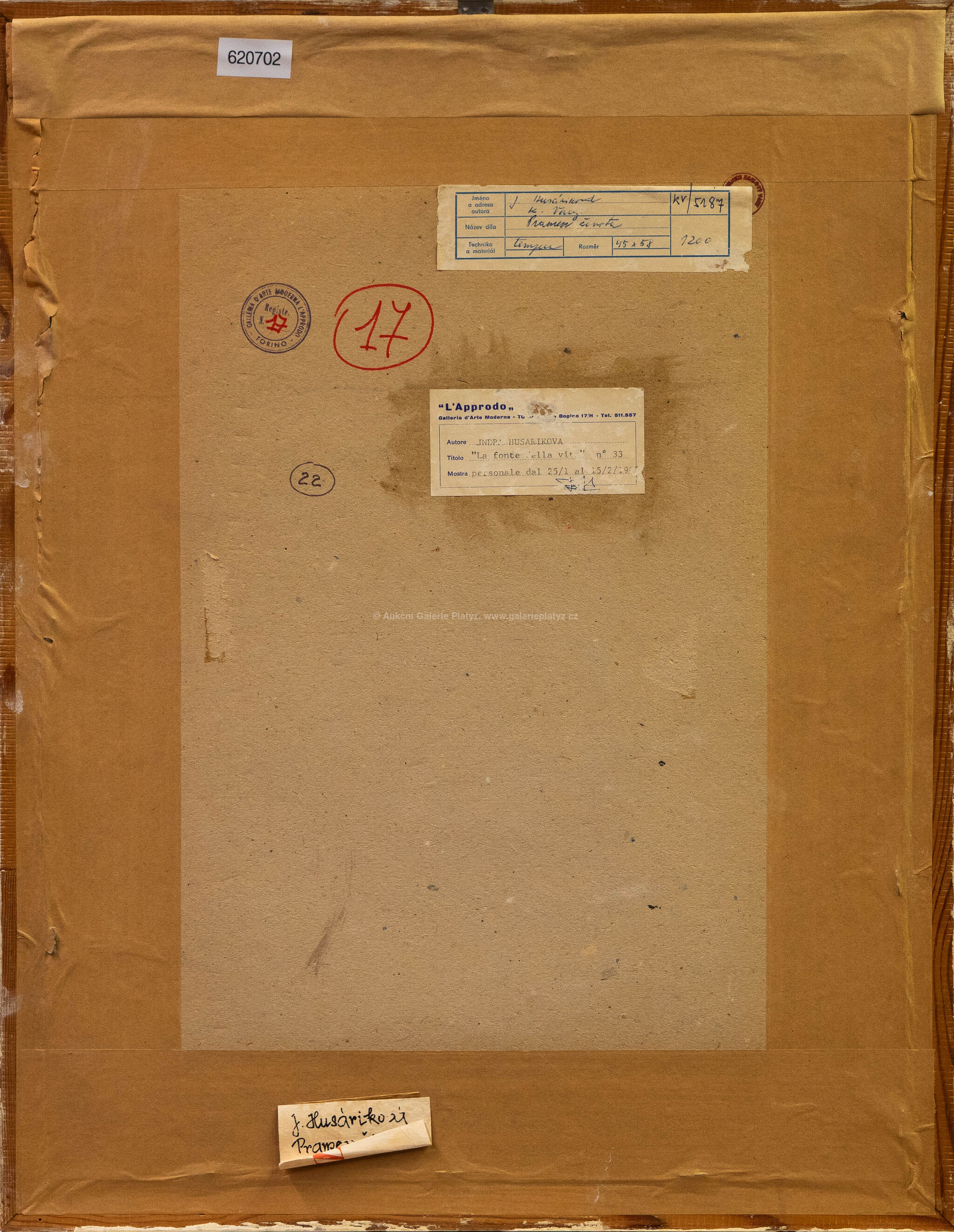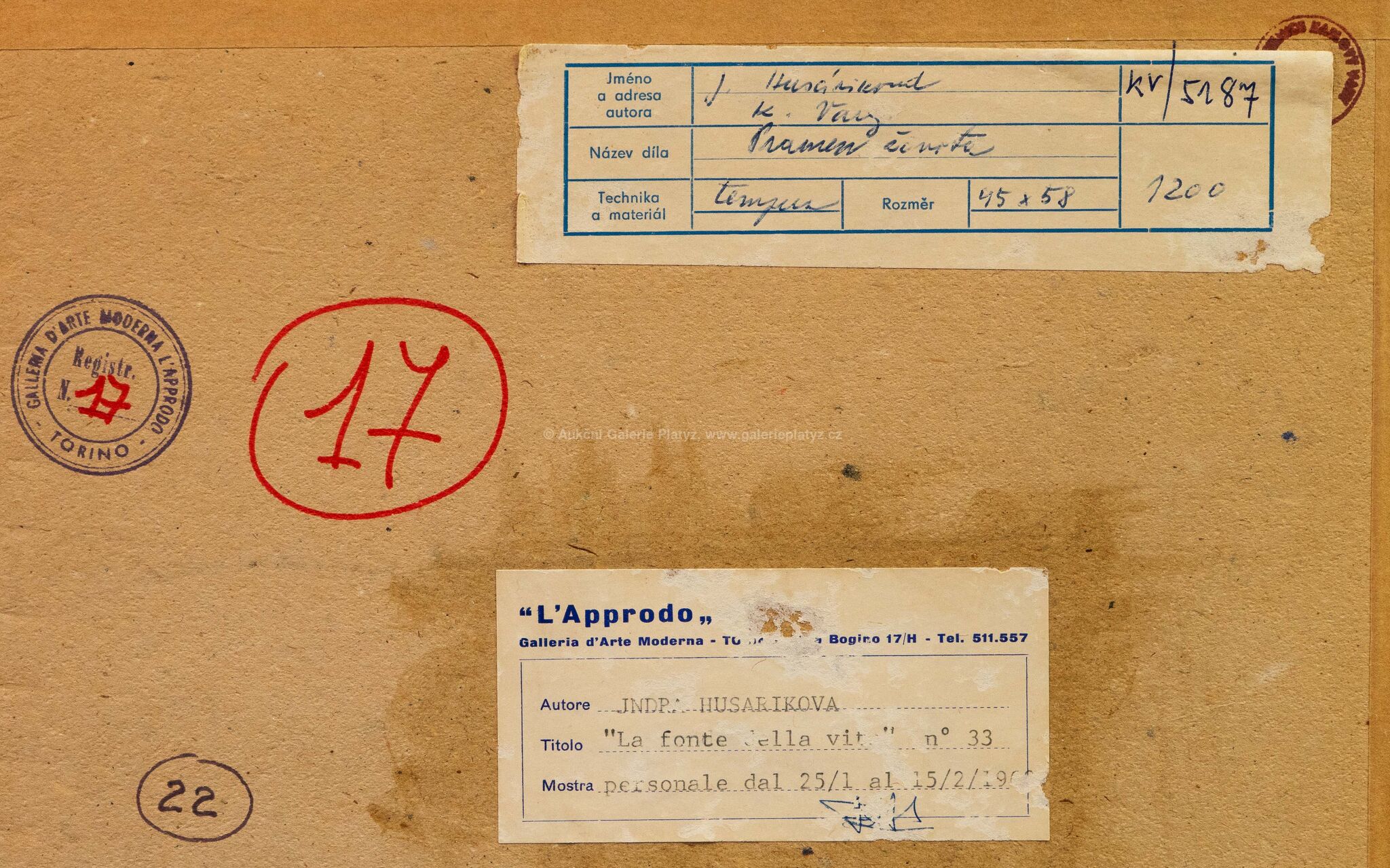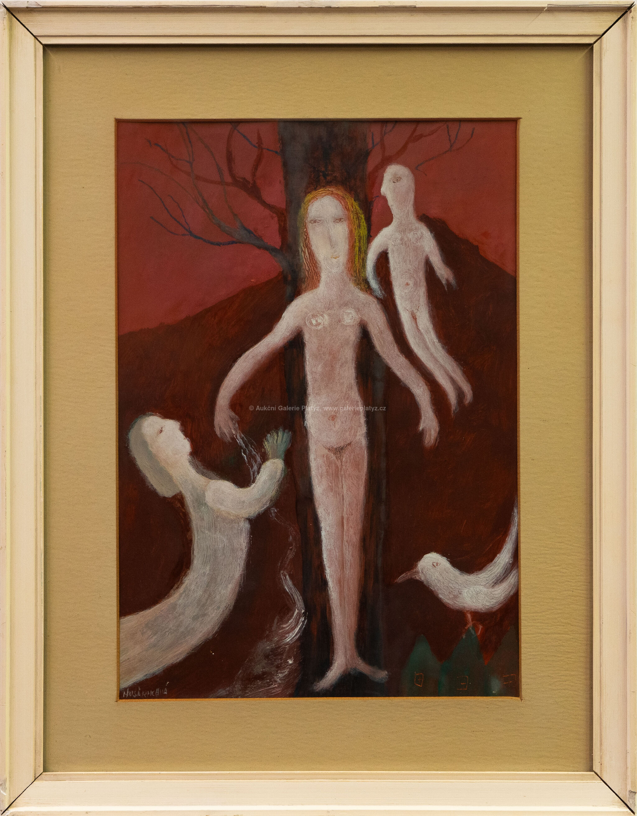 tempera/karton, rozměr ve výřezu 42 x 29 cm, značeno vlevo dole, paspartováno, zaskleno, rámováno, poškozený rám, na zadní straně štítek z galerie (Torino)