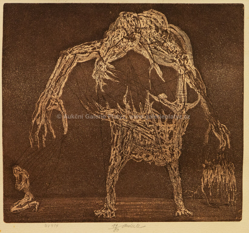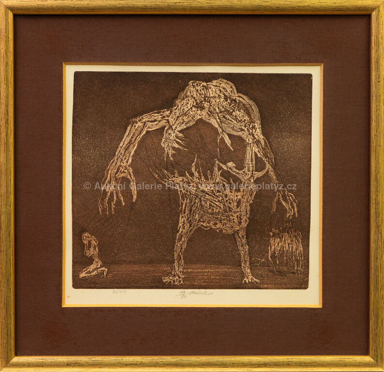 lept/papír, rozměr ve výřezu 22,5 x 24,5 cm, značeno a číslováno ve spodní části, paspartováno, zaskleno, rámováno