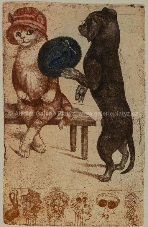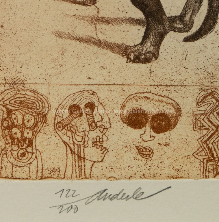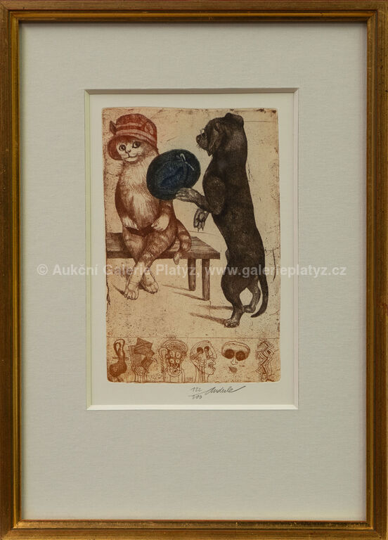 lept/papír, rozměr ve výřezu 21,5 x 13,5 cm, značeno a číslováno ve spodní části, paspartováno, zaskleno, rámováno
