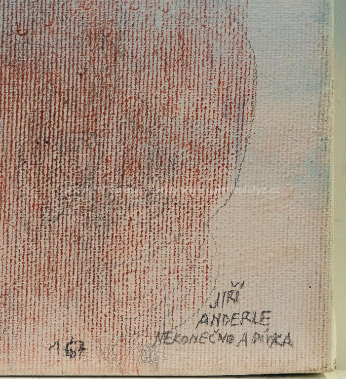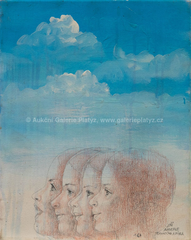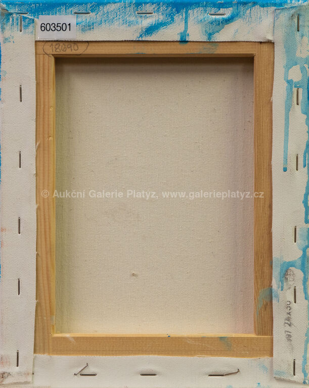 kombinovaná technika, olej/tužka/pastel/plátno, rozměr 30 x 24 cm, značeno a popsáno vpravo dole, nerámováno