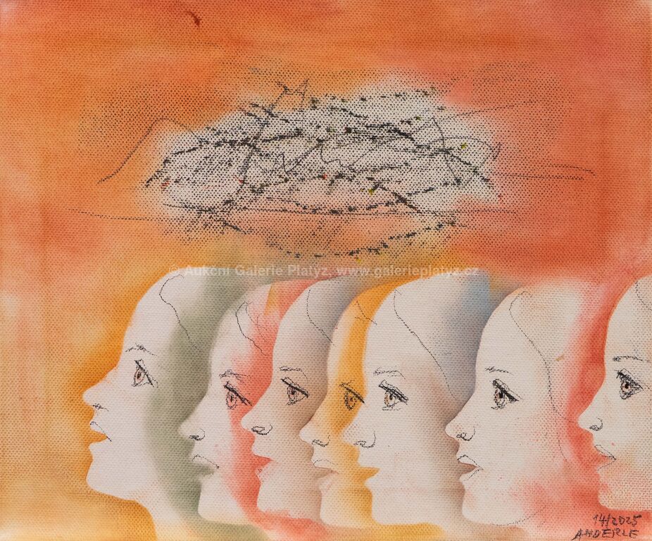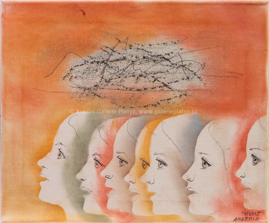 kombinovaná technika, olej/pastel/plátno, rozměr 25 x 30 cm, značeno a datováno vpravo dole, nerámováno