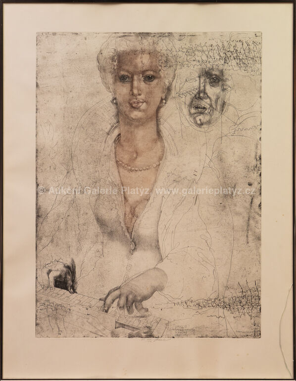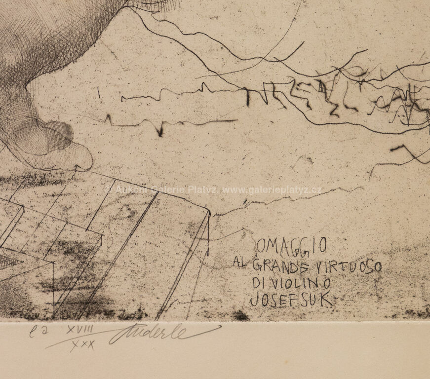 lept/suchá jehla/papír, rozměr tiskové plochy 66,5 x 49 cm, rozměr 82 x 63,5 cm, značeno a číslováno ve spodní části, zaskleno, rámováno, v pravém dolním rohu prasklé sklo