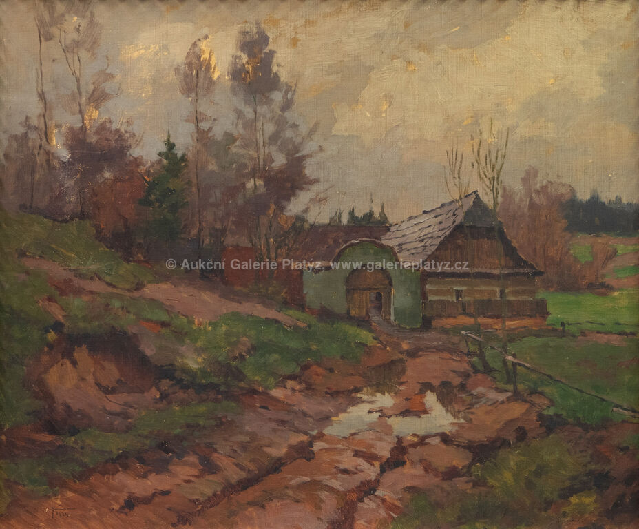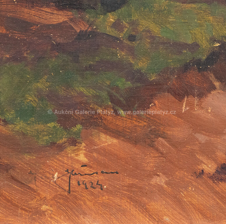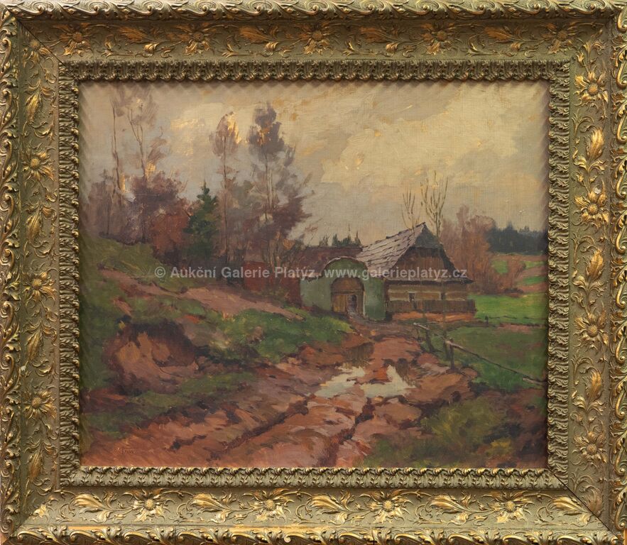 olej/karton, rozměr 54 x 66 cm, značeno a datováno vlevo dole, rámováno, poškozený rám, drobné oděrky v malbě