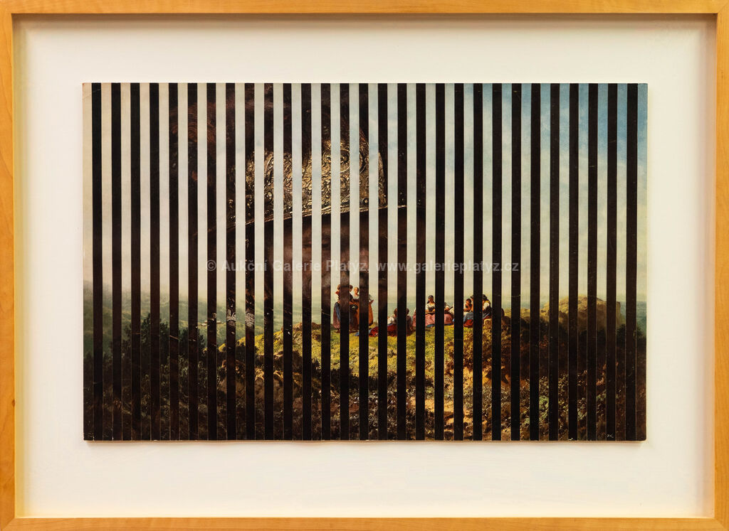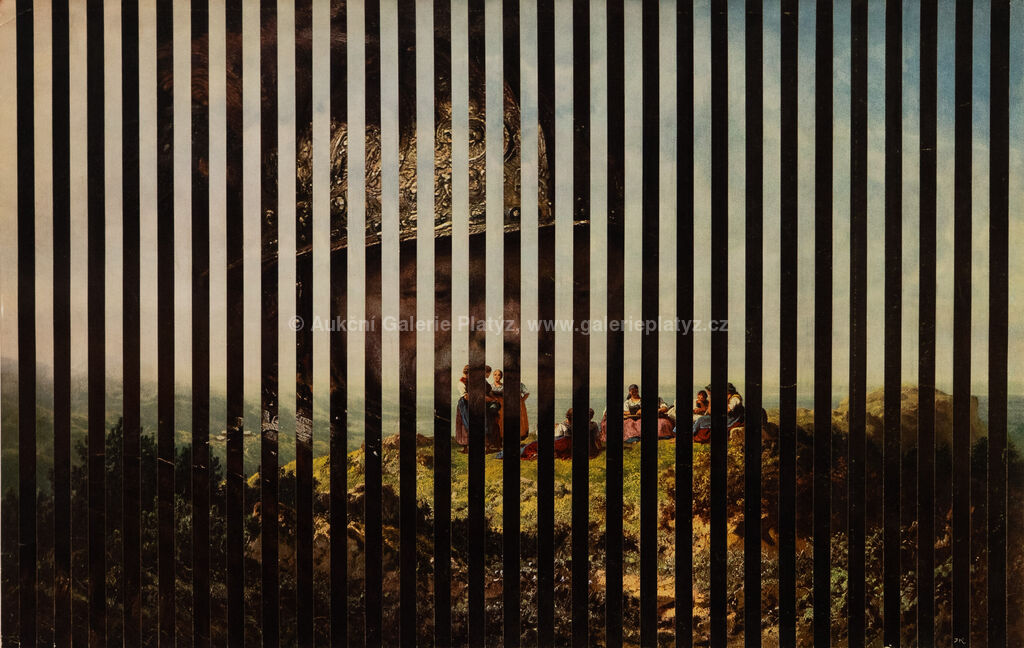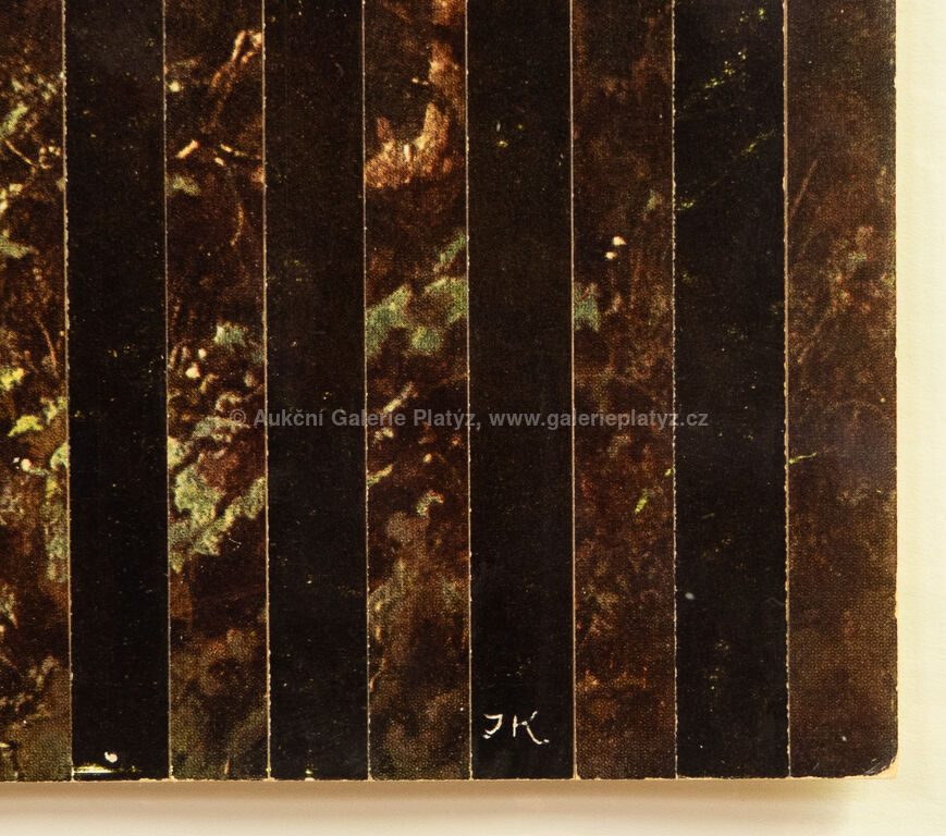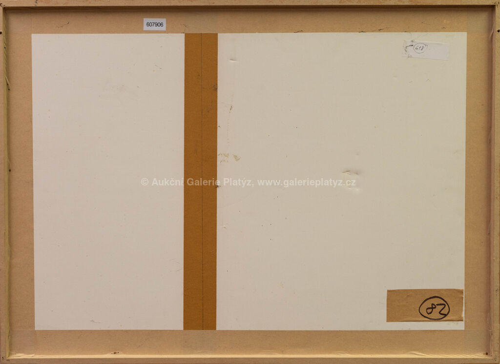 koláž/papír, rozměr listu 37,5 x 59 cm, značeno vpravo dole, zaskleno, rámováno, poškozené sklo