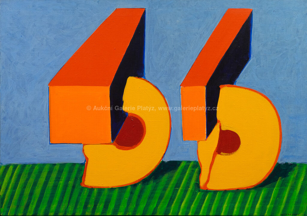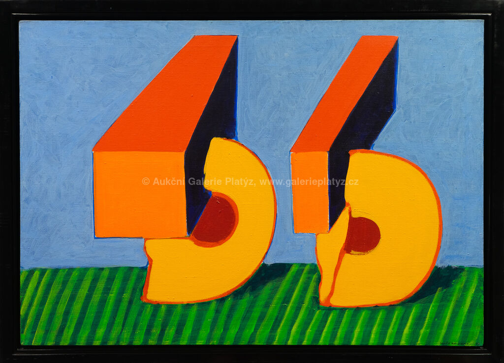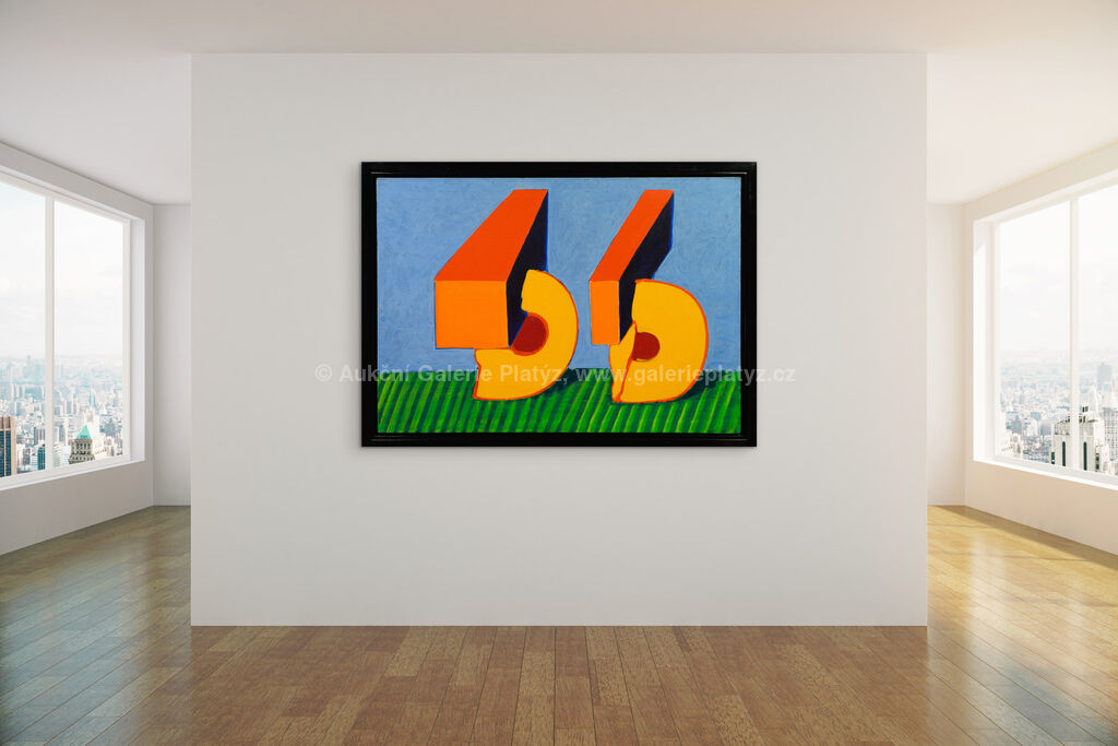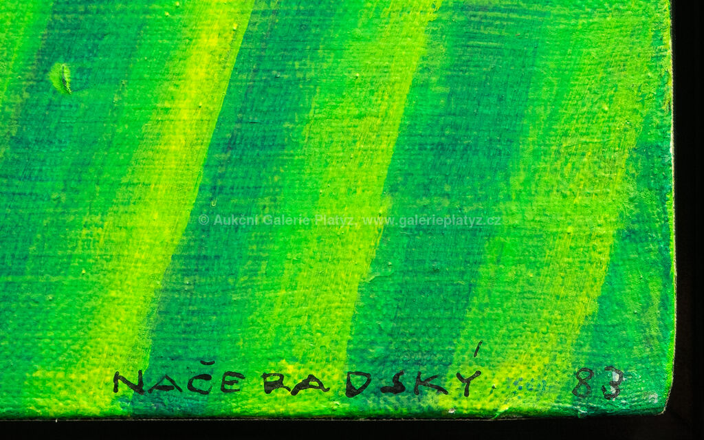 akryl/plátno, rozměr 82 x 116 cm (VELKÝ FORMÁT), značeno a datováno vpravo dole, rámováno, oděrky na rámu, vznik 1983