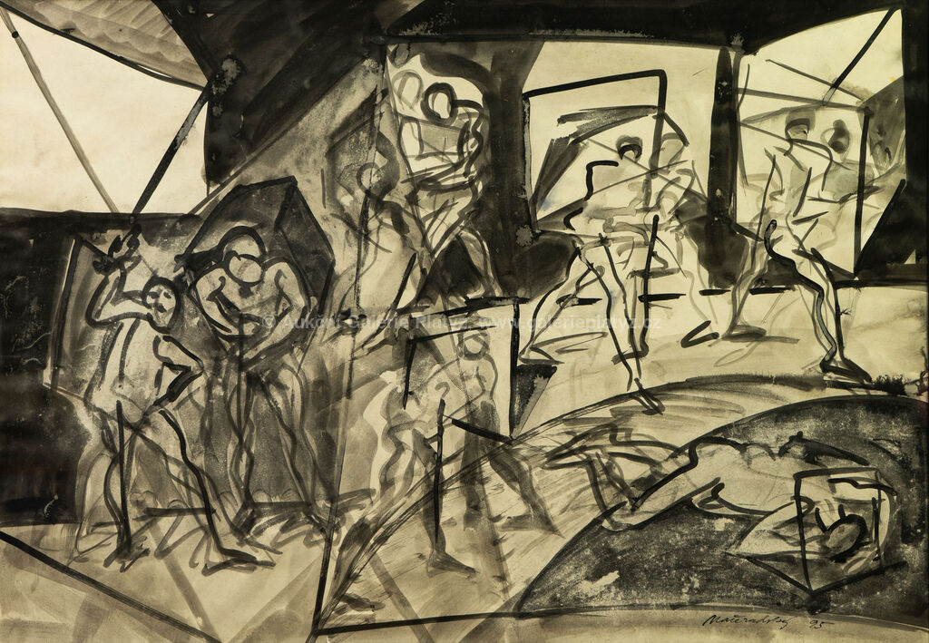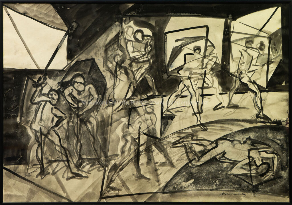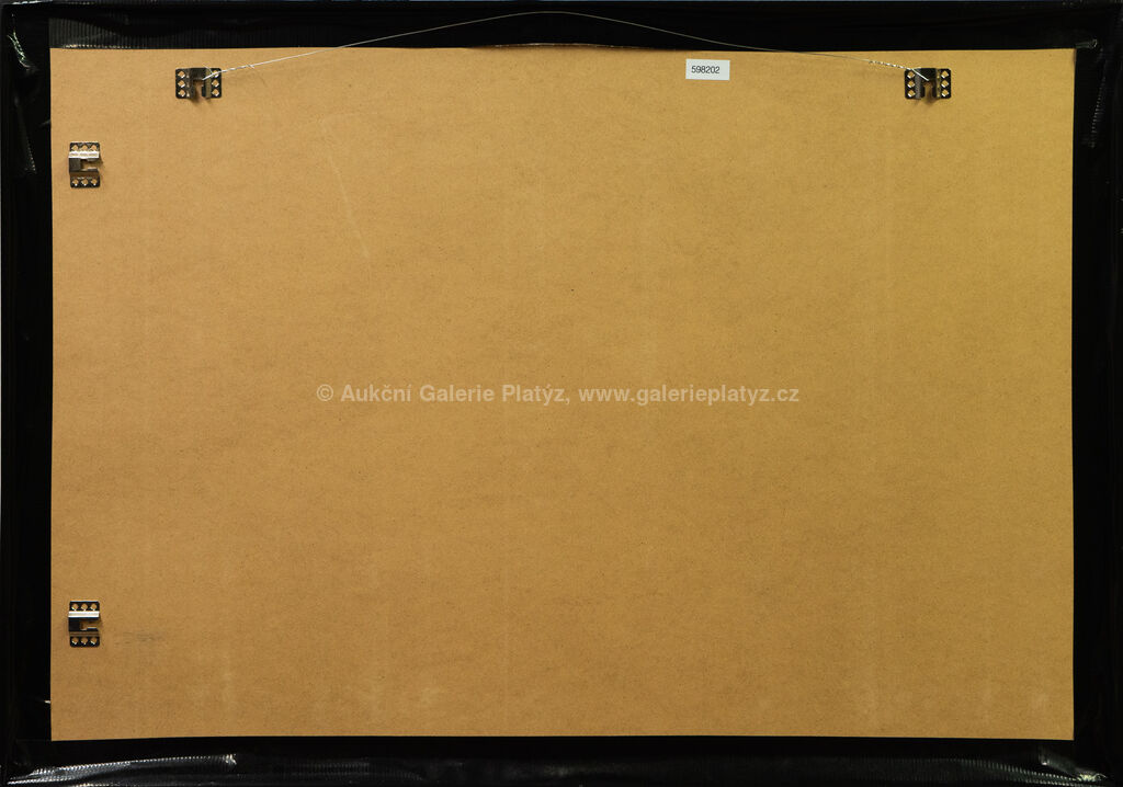 lavírovaná tuš/papír, rozměr 69 x 99 cm, značeno a datováno vpravo dole, zaskleno, rámováno