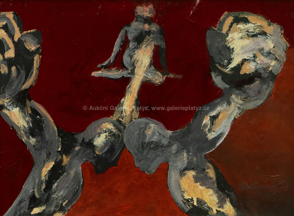 olej/papír, rozměr ve výřezu 28 x 38 cm, značeno vpravo dole, paspartováno, zaskleno, rámováno