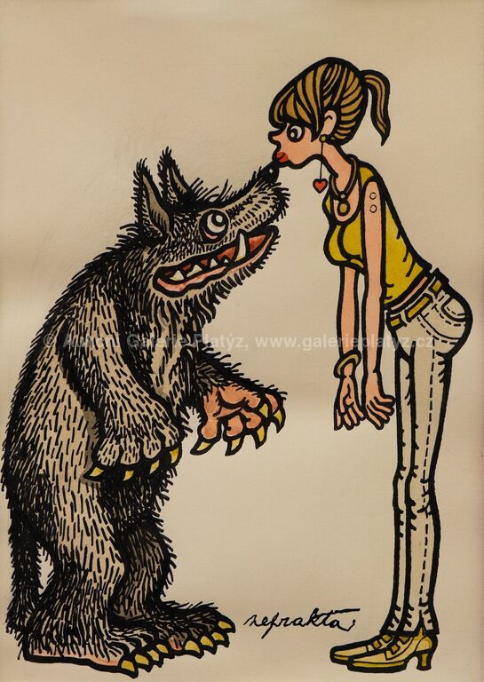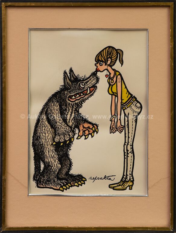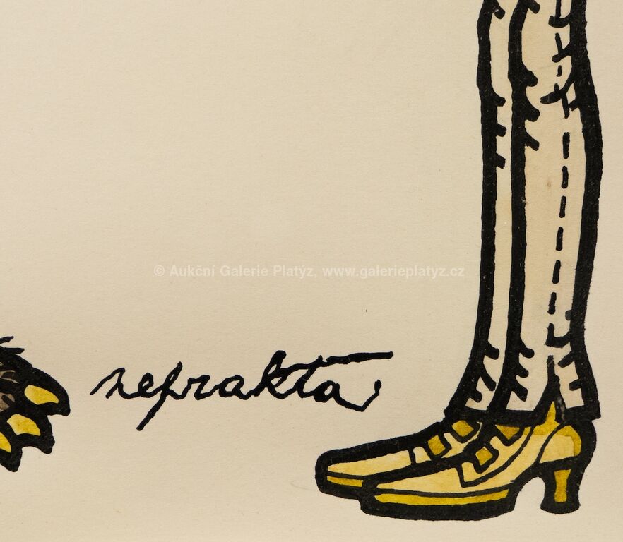 akvarel/tuš/papír, rozměr ve výřezu 27 x 19 cm, značeno ve spodní části, paspartováno, zaskleno