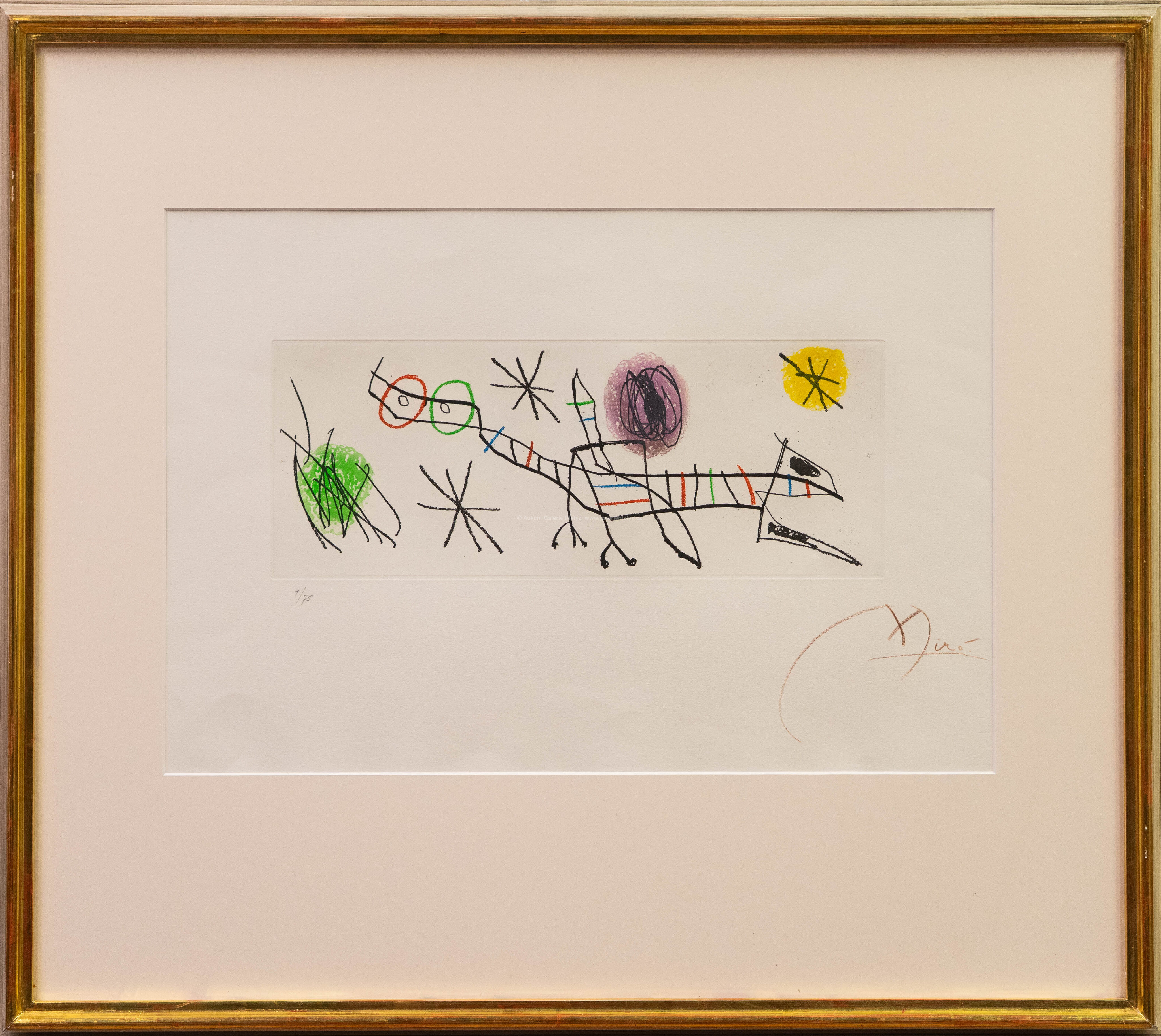 kombinovaná technika, lept/akvatinta/papír, rozměr ve výřezu 32,5 x 48 cm, značeno a číslováno ve spodní části, paspartováno, zaskleno muzeálním sklem, rámováno