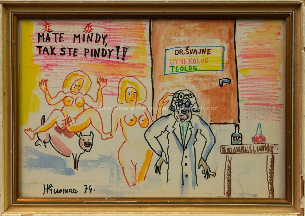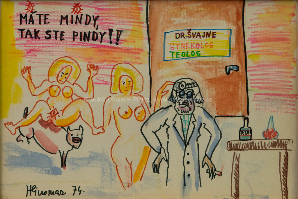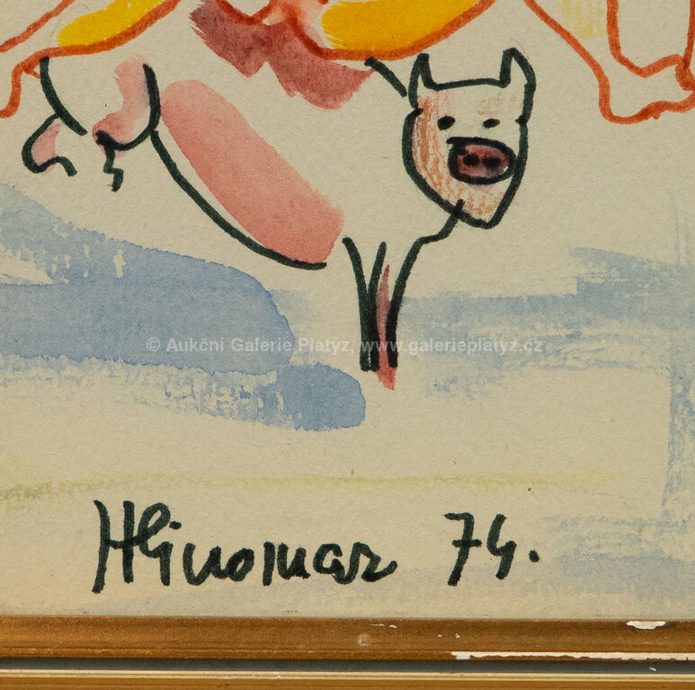kombinovaná technika, akvarel/fix/papír, rozměr 20 x 30 cm, značeno a datováno vlevo dole, zaskleno, rámováno, poškozený rám