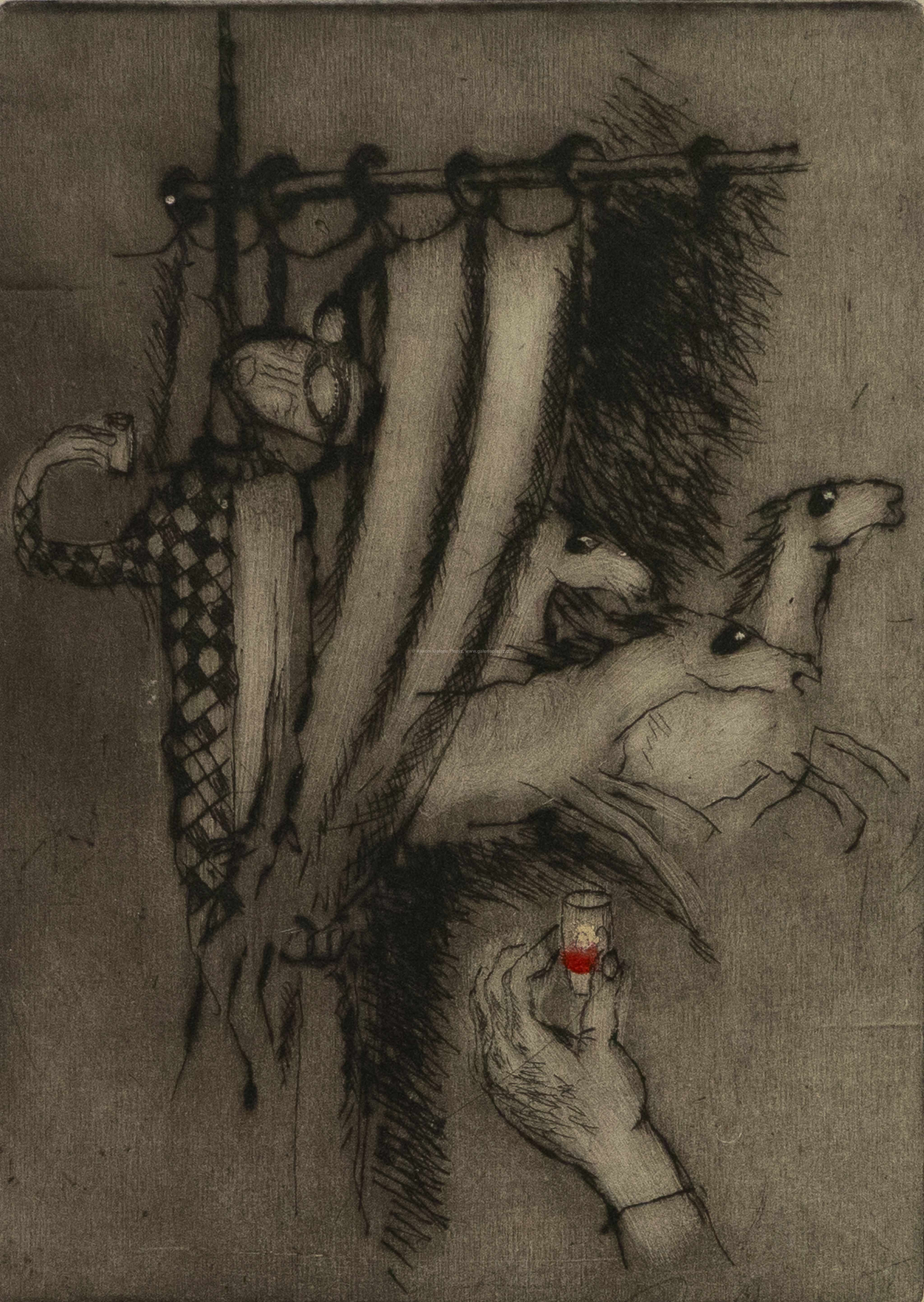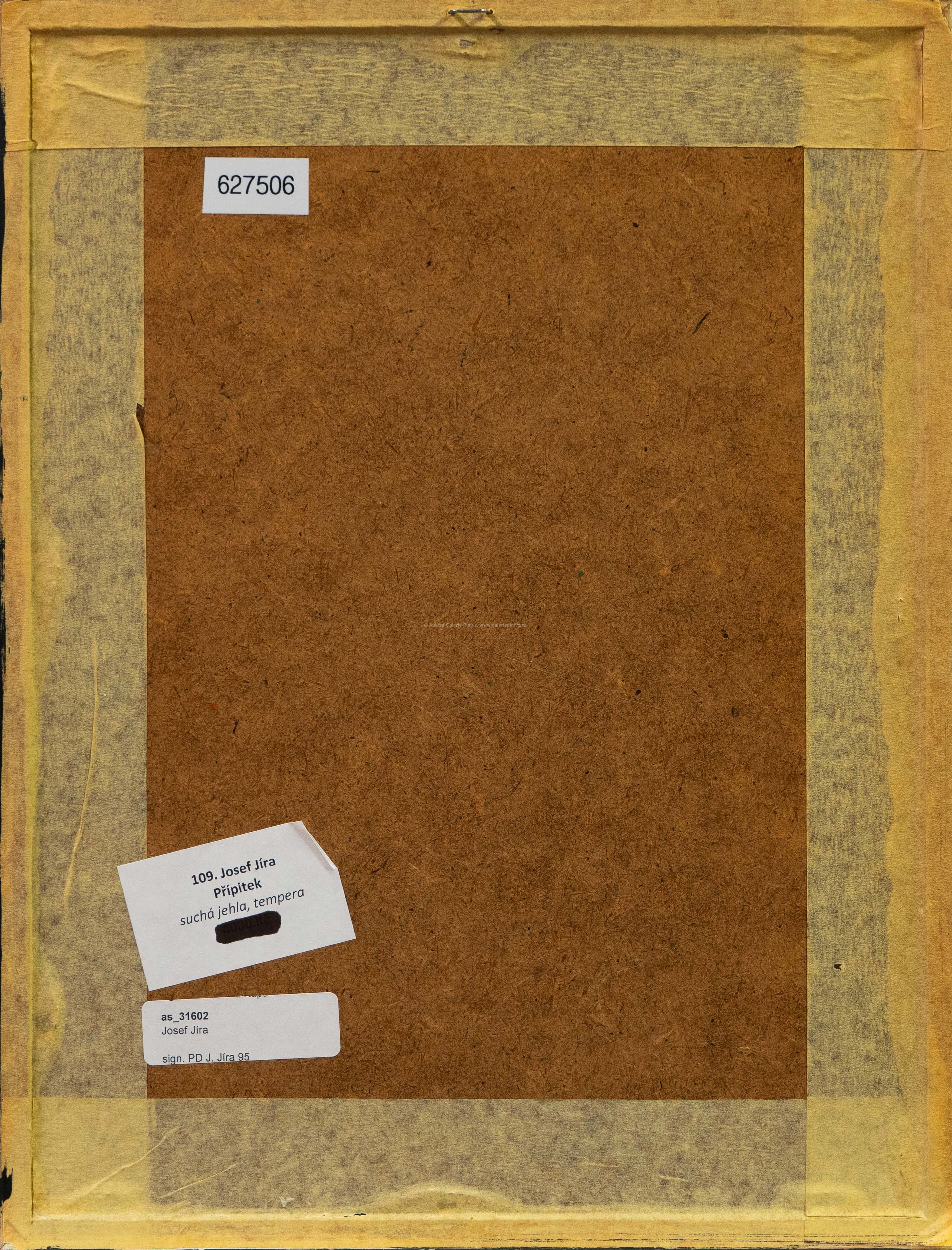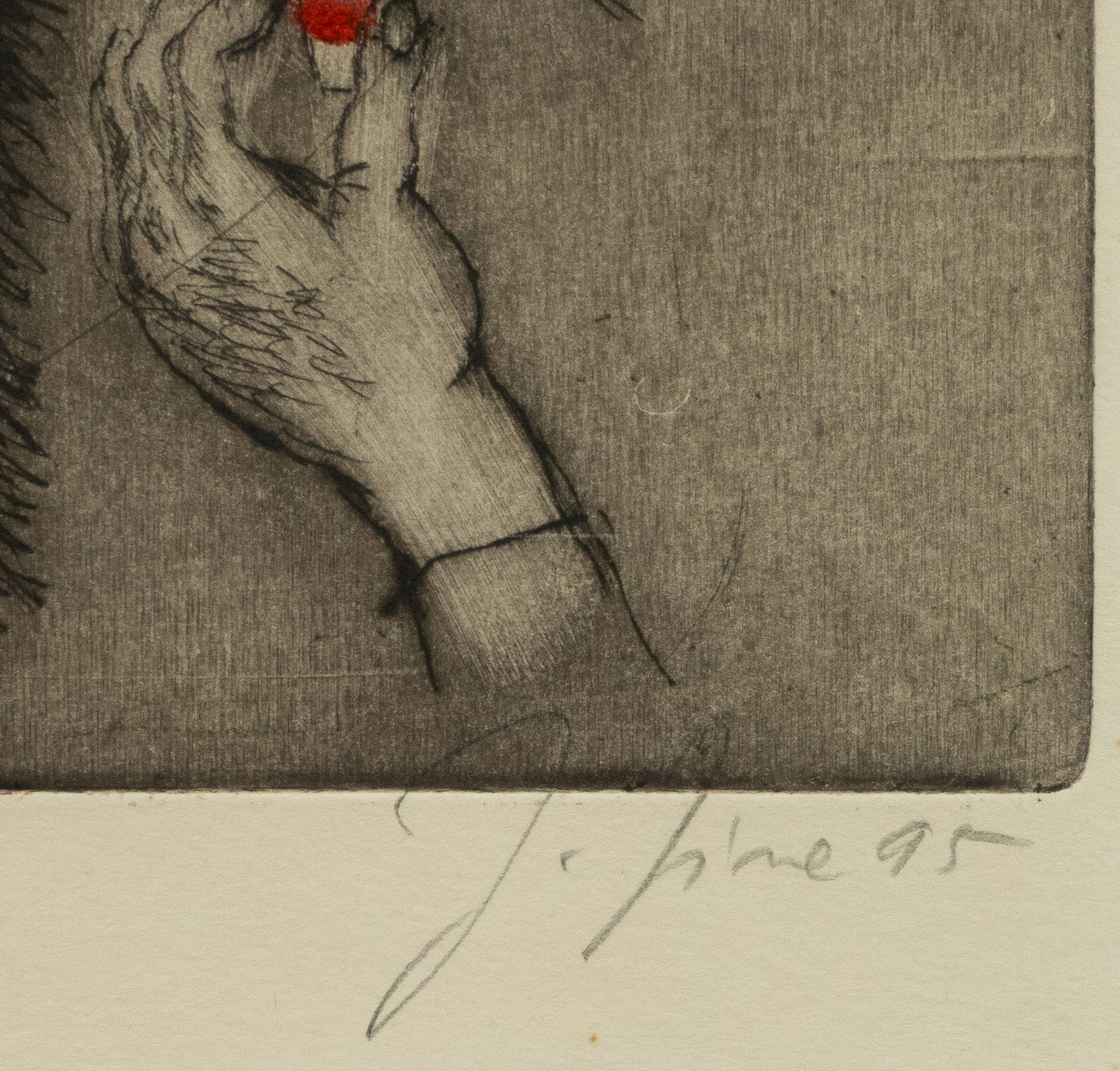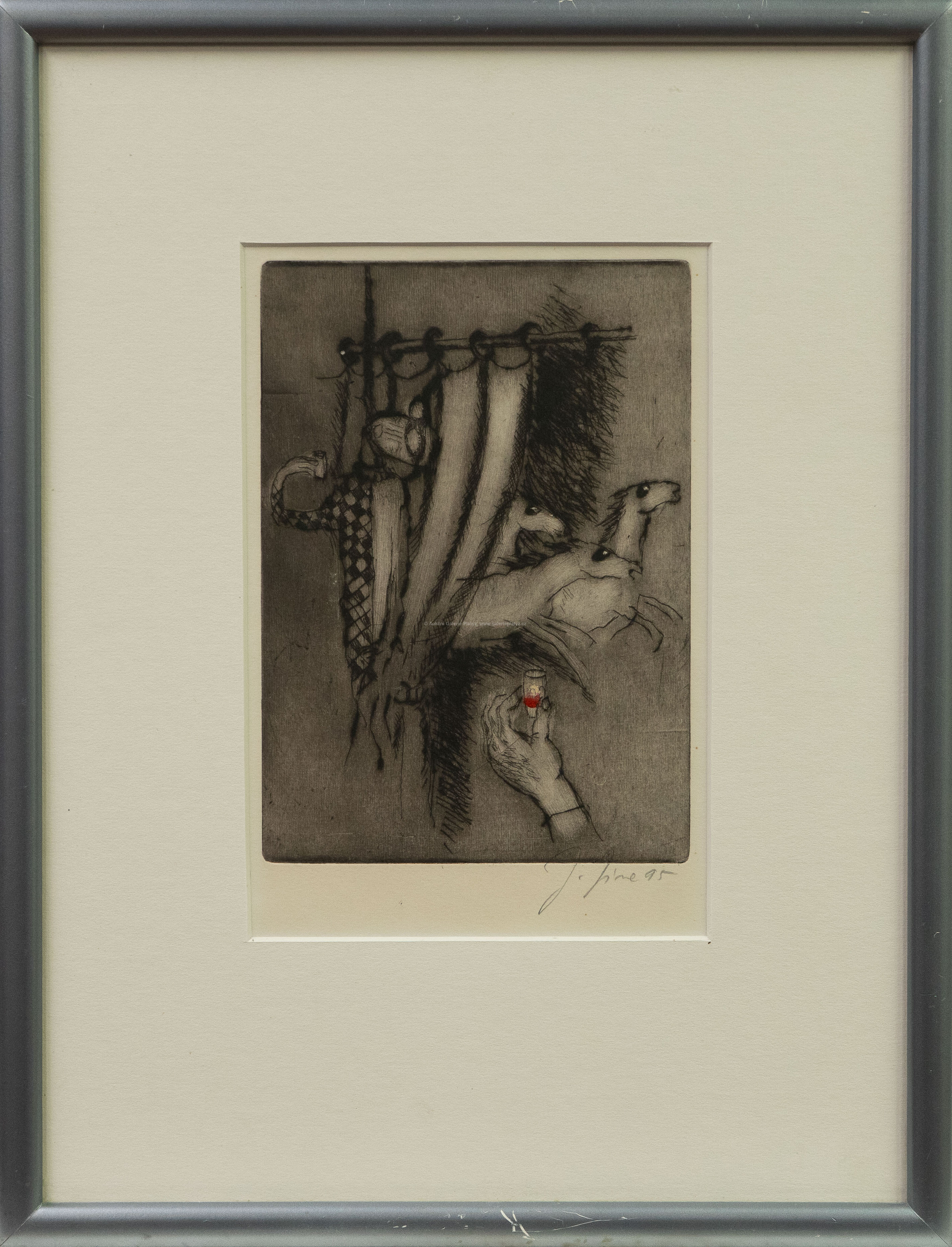 suchá jehla/tempera/papír, rozměr ve výřezu 22,5 x 15 cm, značeno a datováno vpravo dole, paspartováno, zaskleno, rámováno, oděrky na rámu