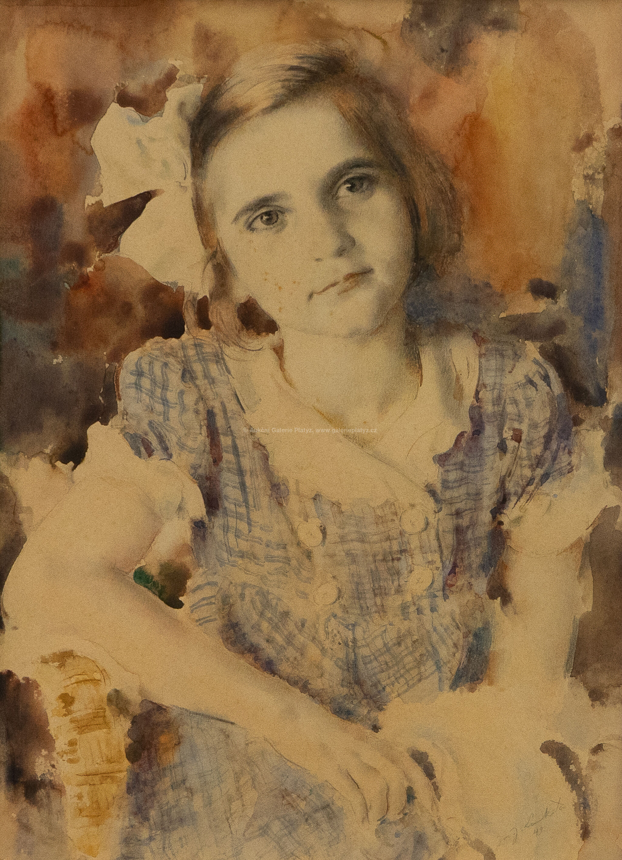 akvarel/papír, rozměr ve výřezu 33 x 24 cm, značeno a datováno vpravo dole, paspartováno, zaskleno, rámováno