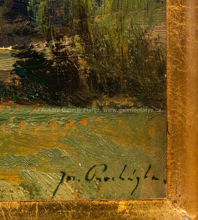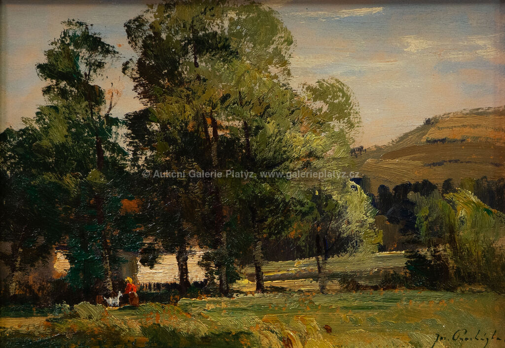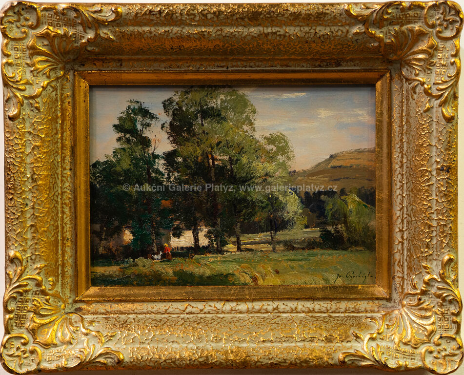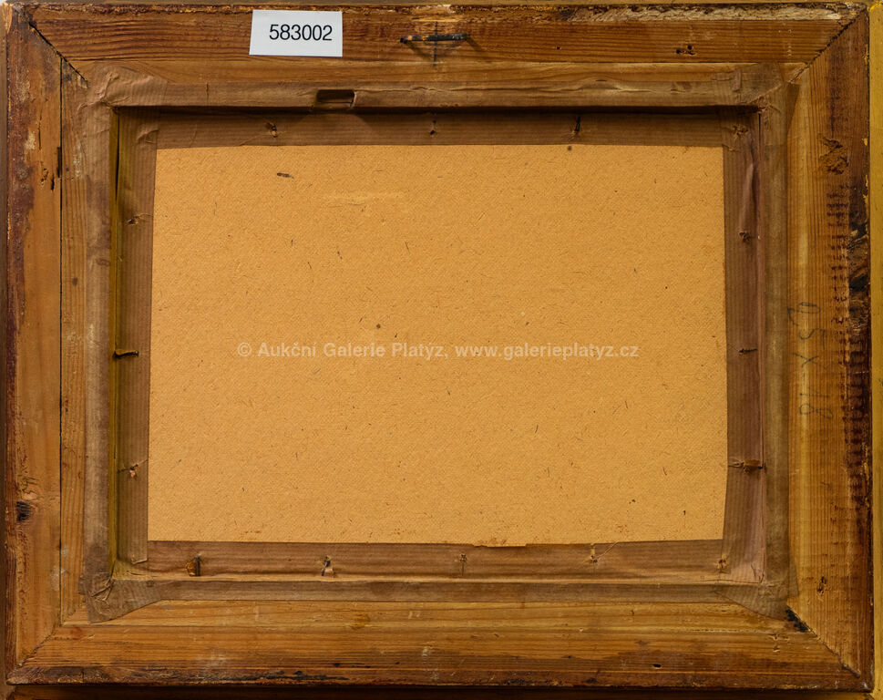 olej/karton, rozměr 18 x 25 cm, značeno vpravo dole, zaskleno, rámováno, poškozený rám