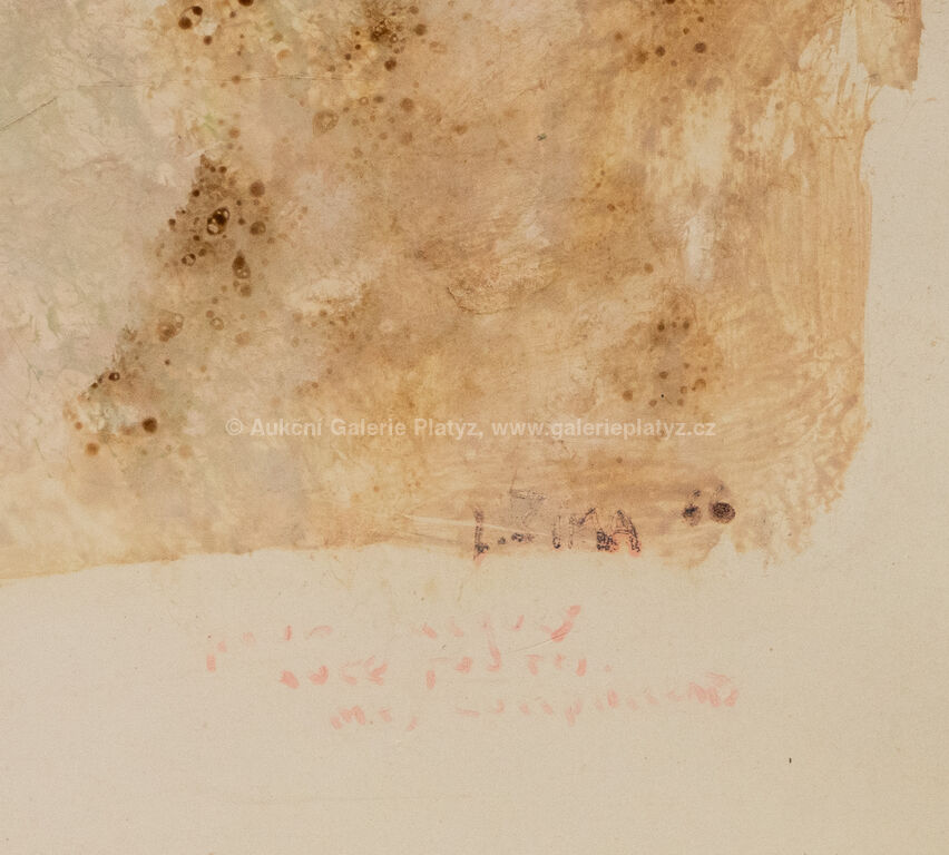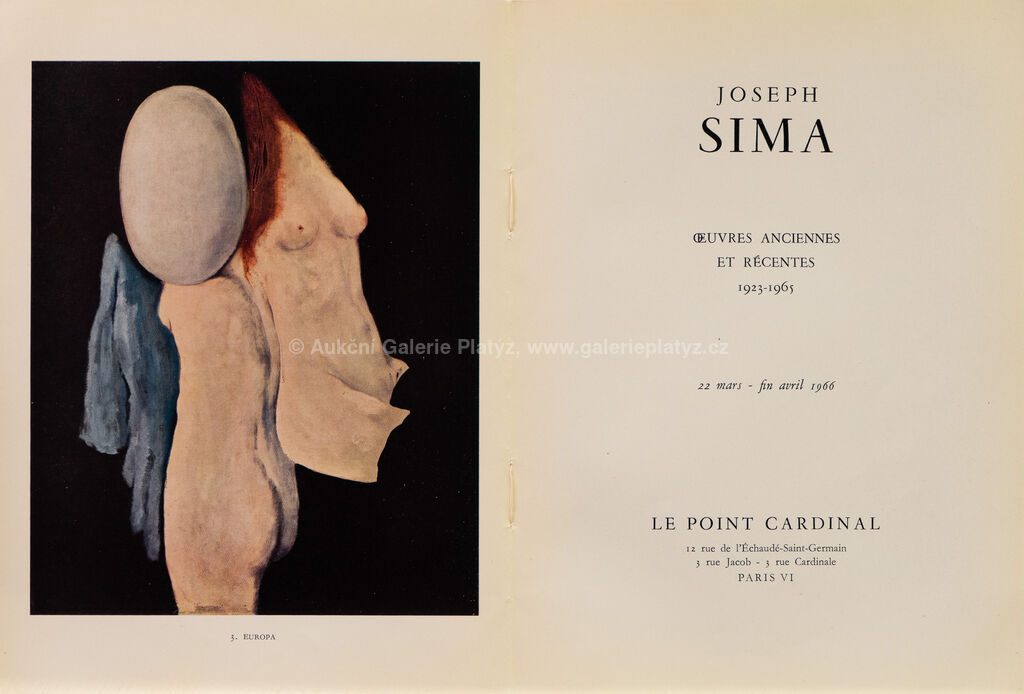 kombinovaná technika/papír, rozměr listu 25 x 18,5 cm, značeno, datováno a popsáno na pravé straně, součástí katalogu k výstavě Joseph Sima: Œuvres anciennes et récentes 1923–1930 et 1960–1966, Galerie Le Point Cardinal, Paříž, přiložen Odborný posudek vypracovaný PhDr. Jaromírem Zeminou