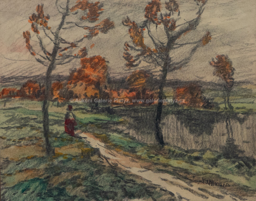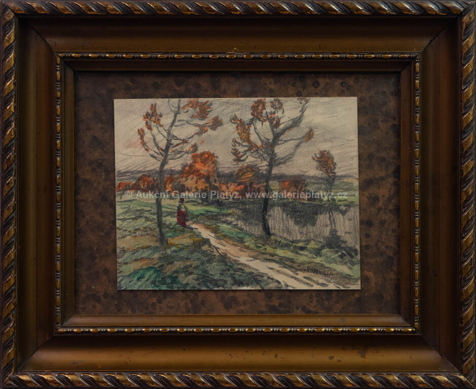 akvarel/pastel/papír, rozměr listu 18,5 x 23,5 cm, značeno vpravo dole, zaskleno, rámováno, oděrky na rámu