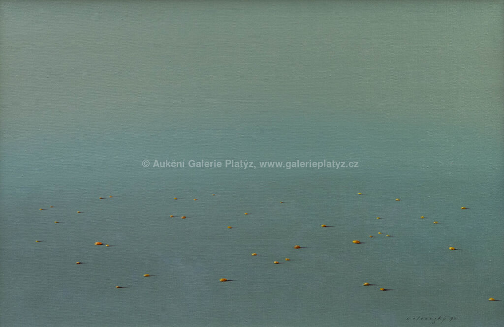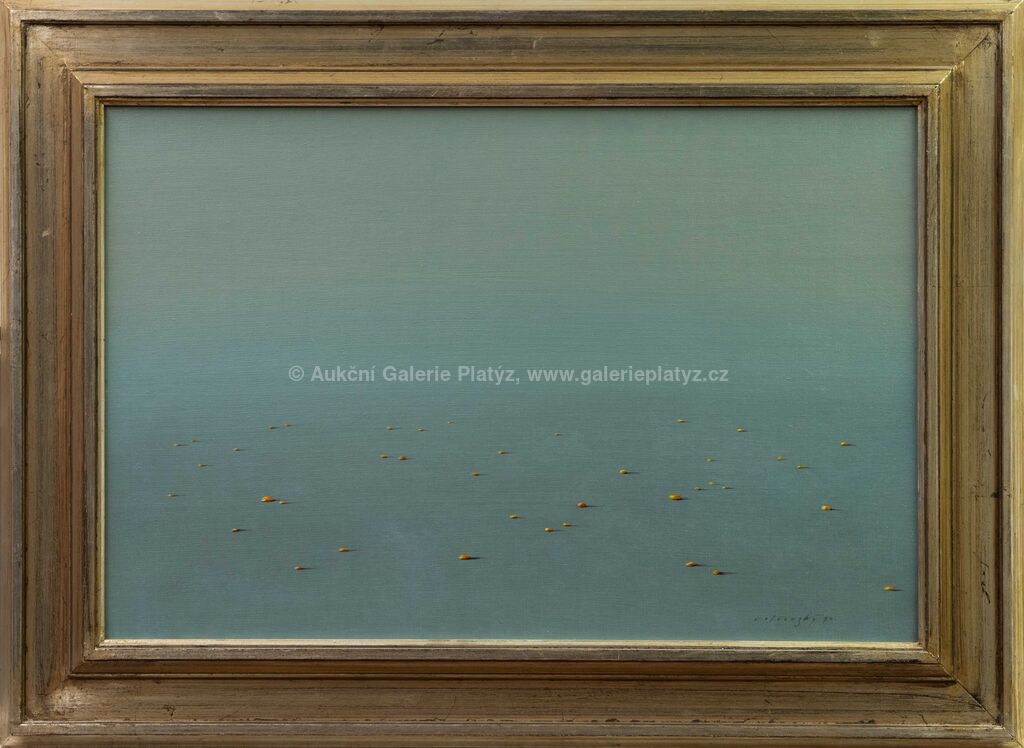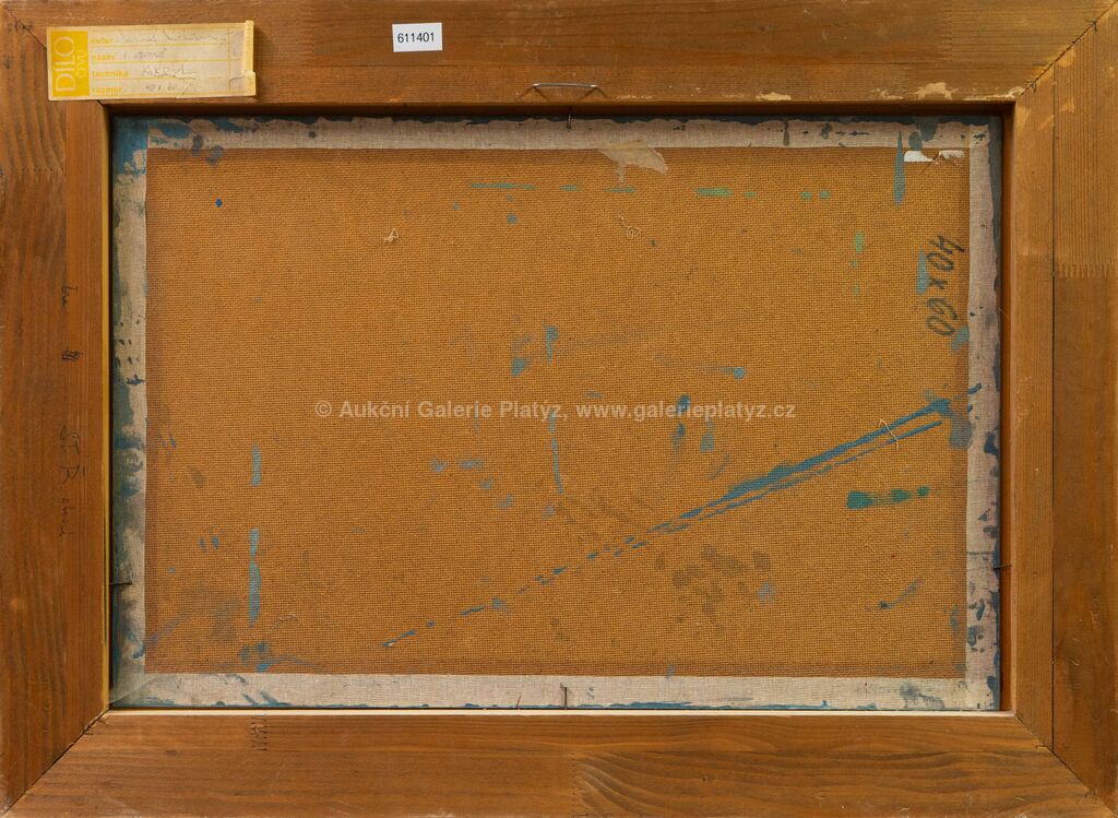 akryl/plátno fixované na sololitu, rozměr 40 x 60 cm, značeno a datováno vpravo dole, rámováno, na zadní straně původní štítek z Díla