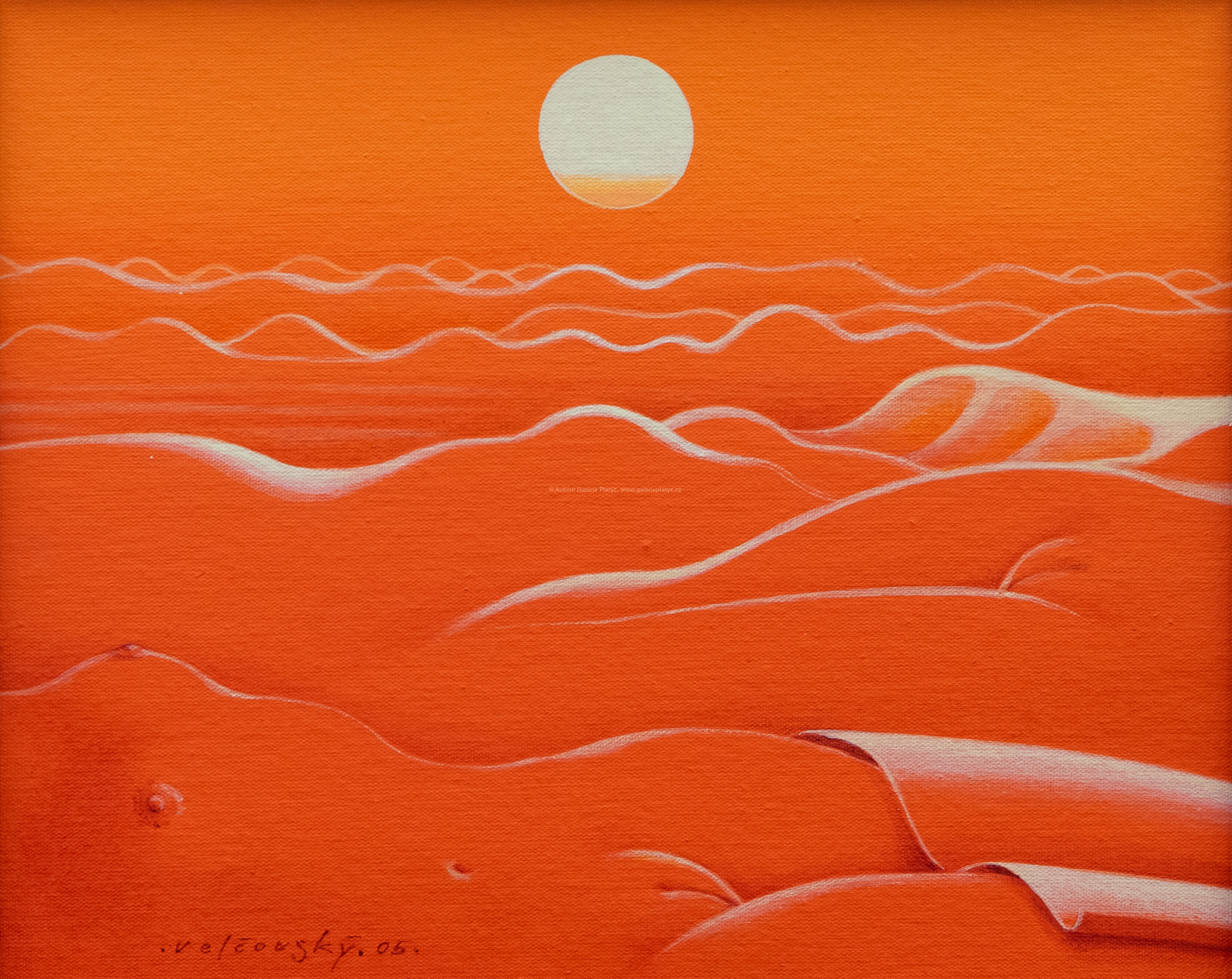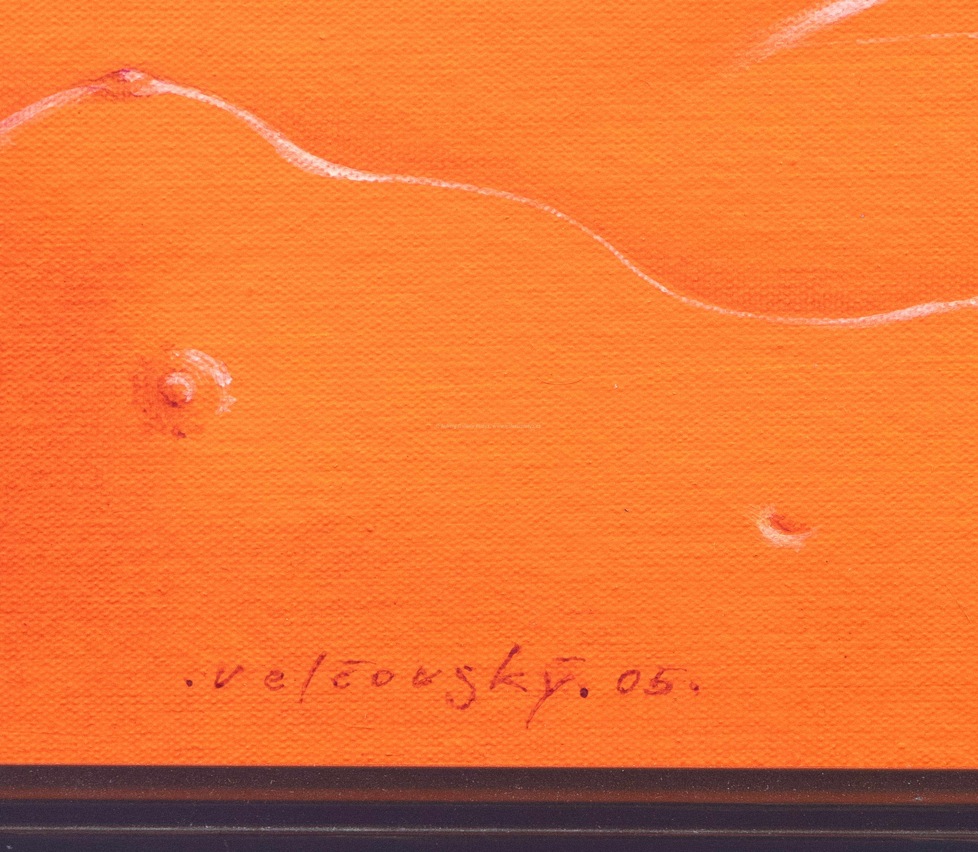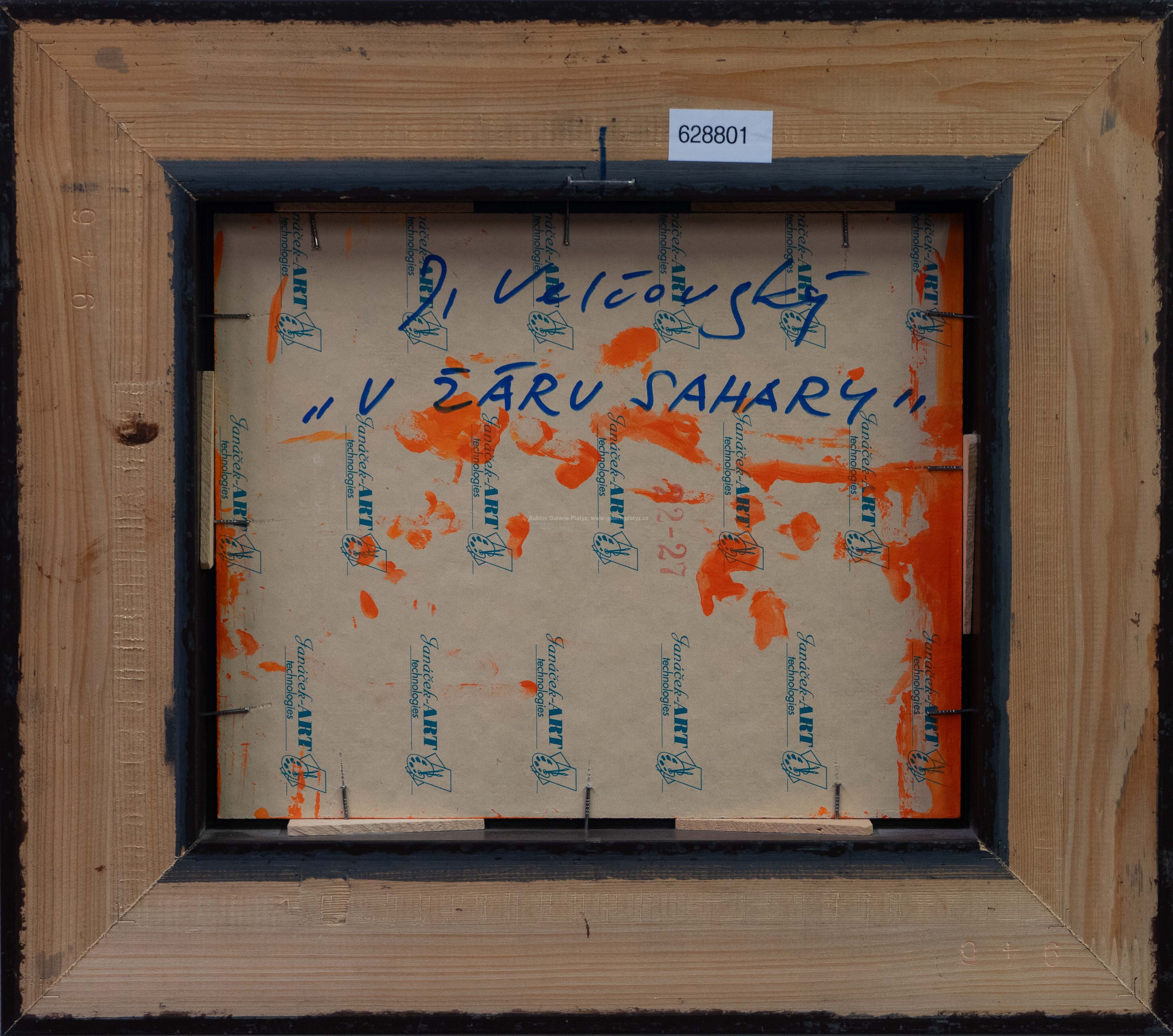 akryl/plátno fixované na kartonu, rozměr 22 x 27 cm, značeno a datováno vlevo dole, rámováno, značeno a popsáno na zadní straně