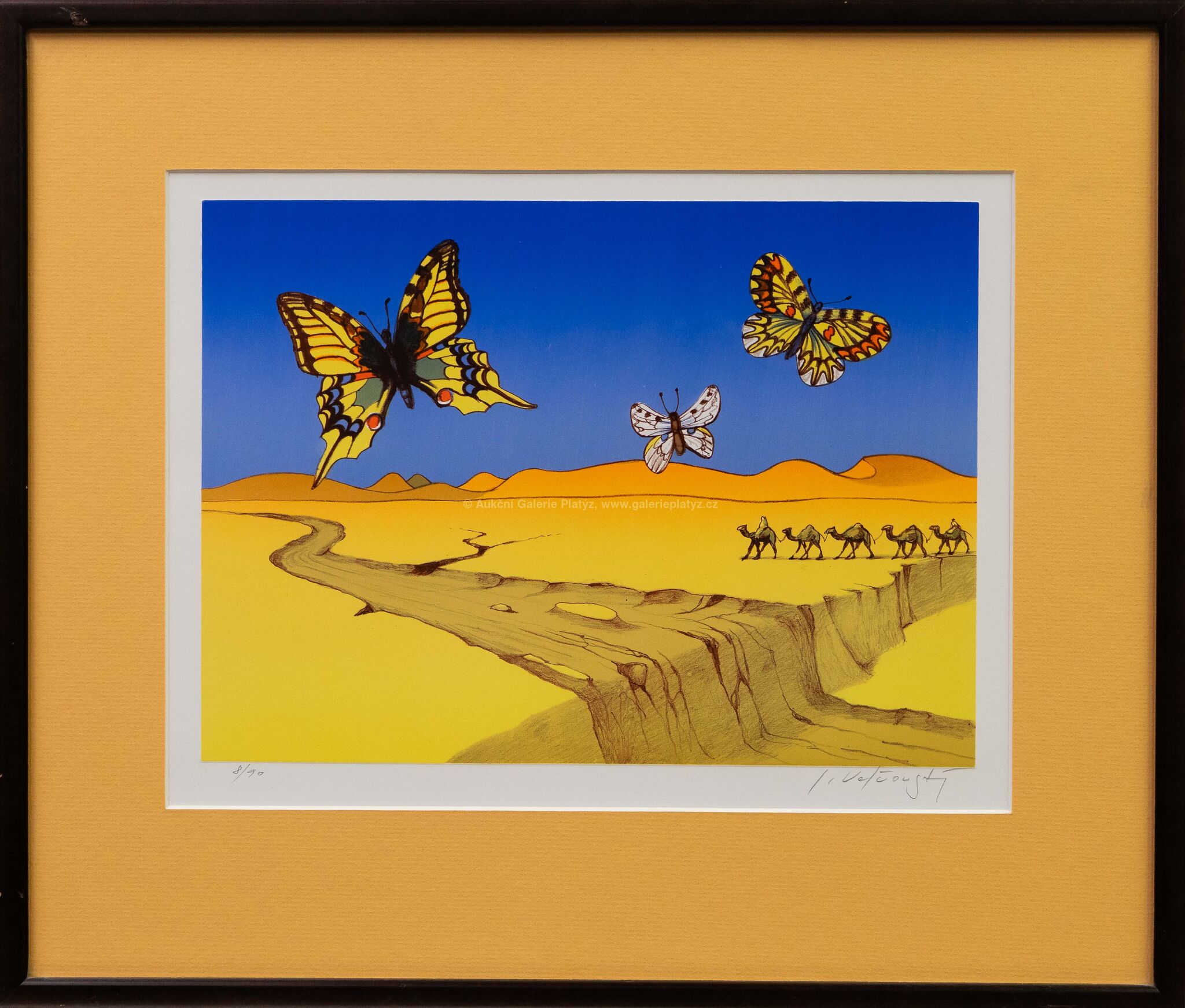 litografie/papír, rozměr ve výřezu 28 x 37 cm, značeno a číslováno ve spodní části, paspartováno, zaskleno, rámováno, oděrky na rámu