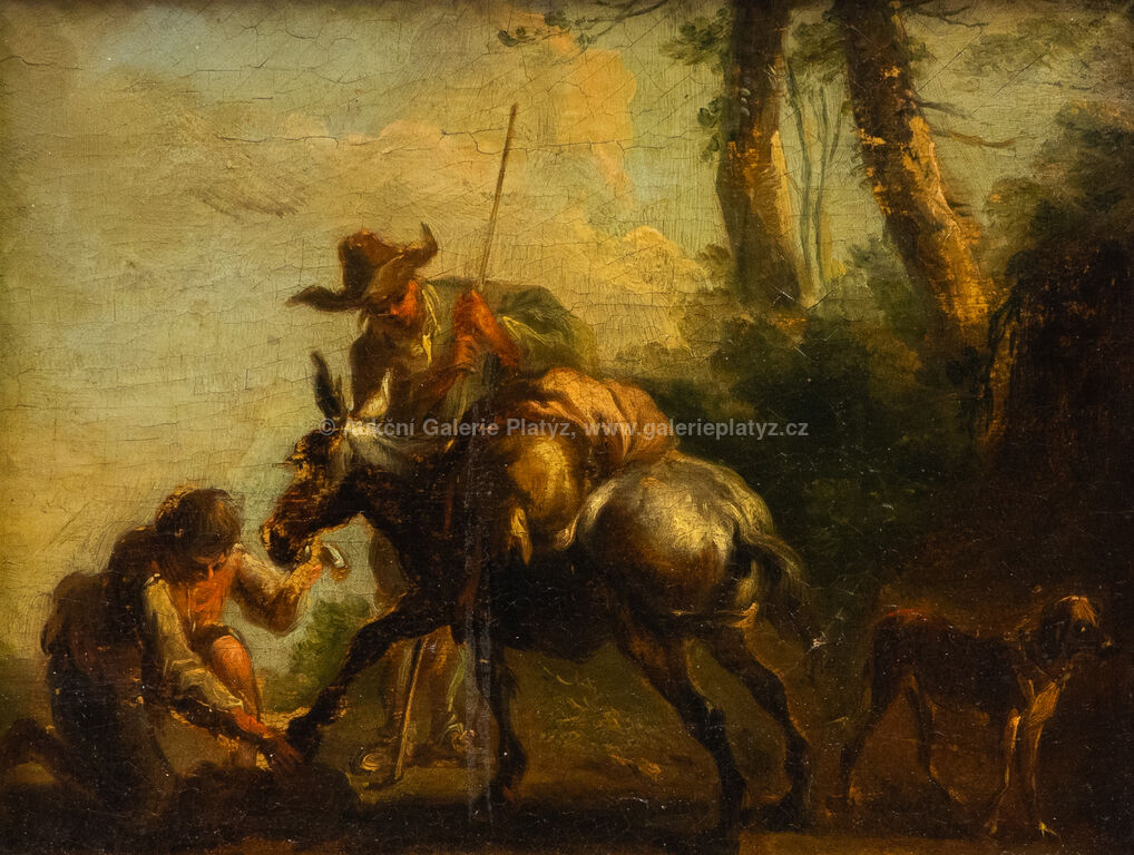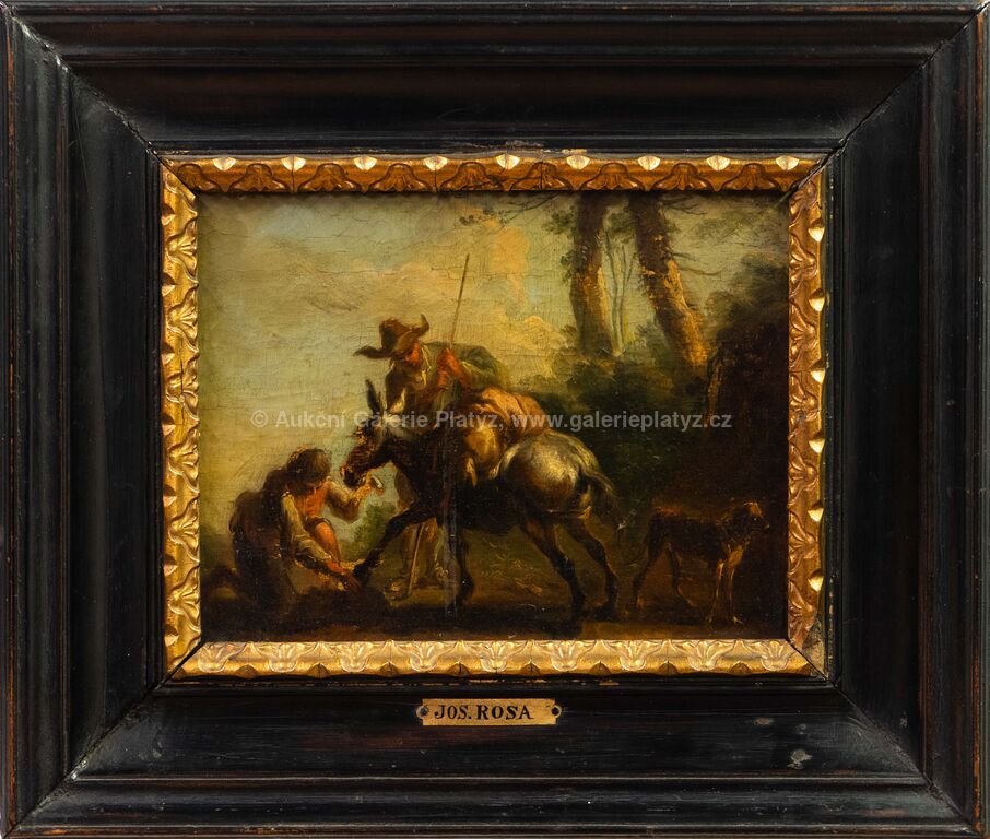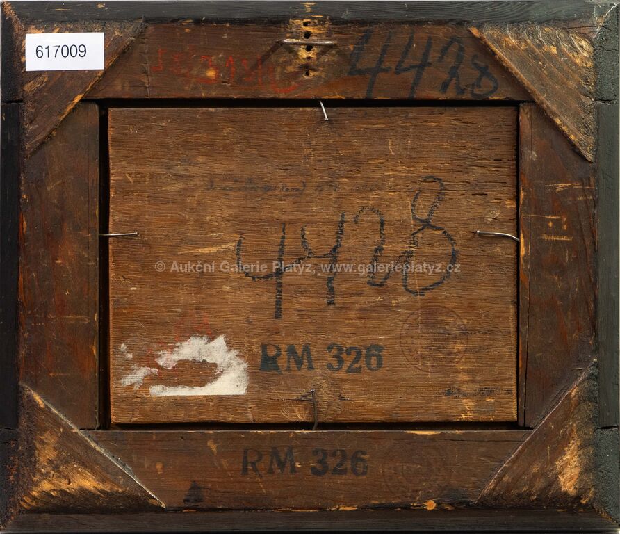 olej/dřevěná deska, rozměr 15,5 x 20 cm, neznačeno, rámováno, poškozený rám, malba krakelovaná