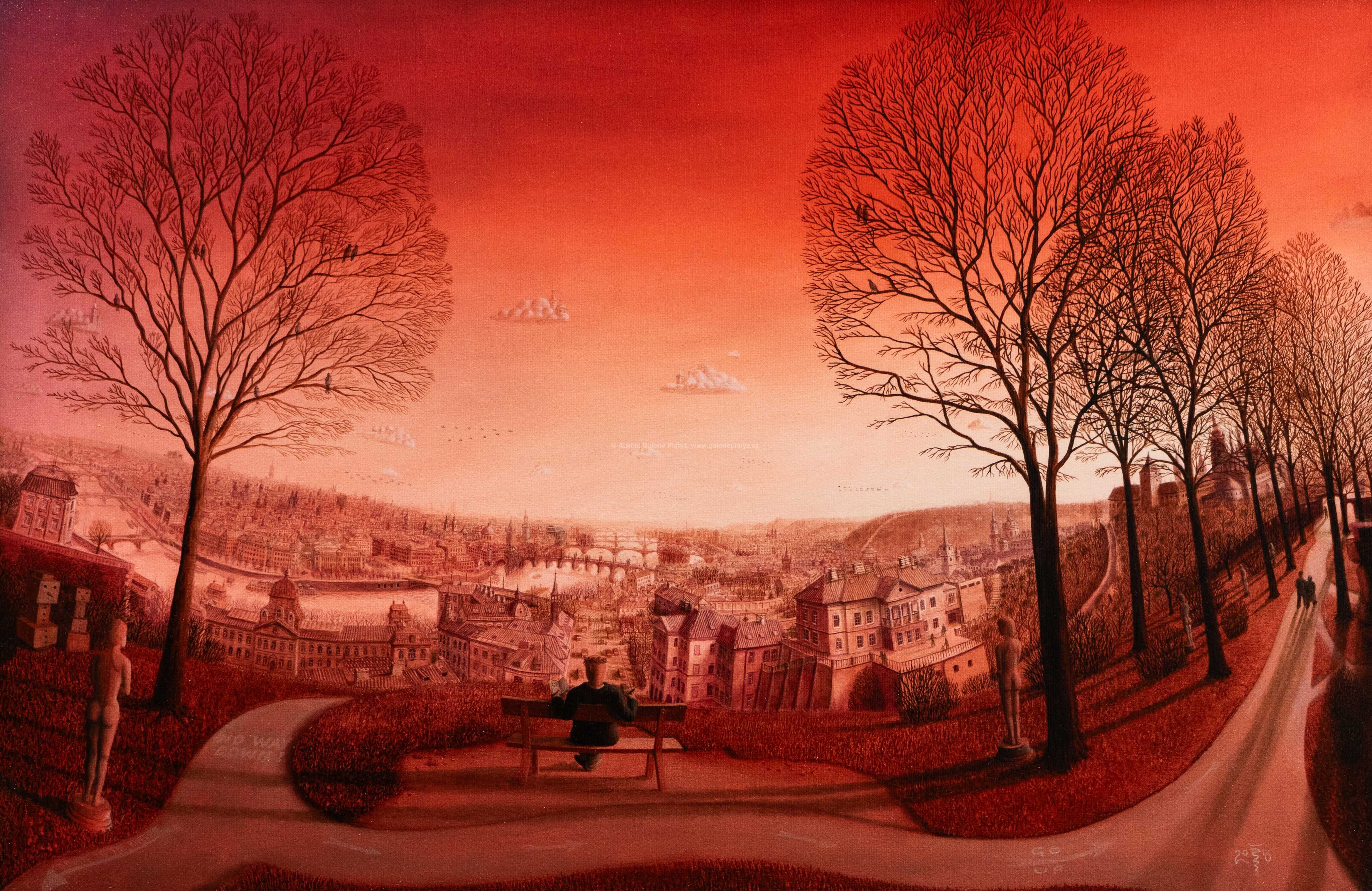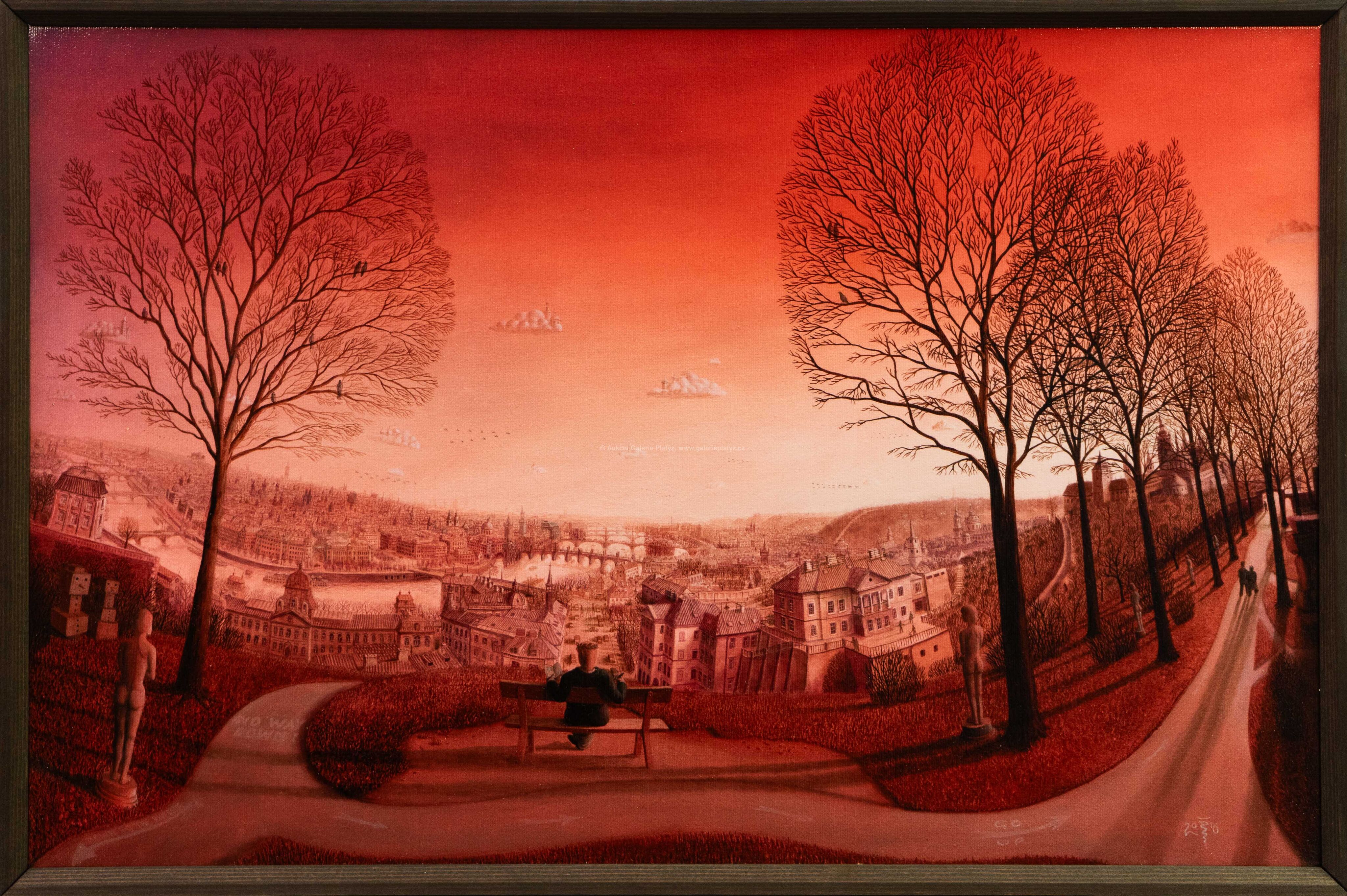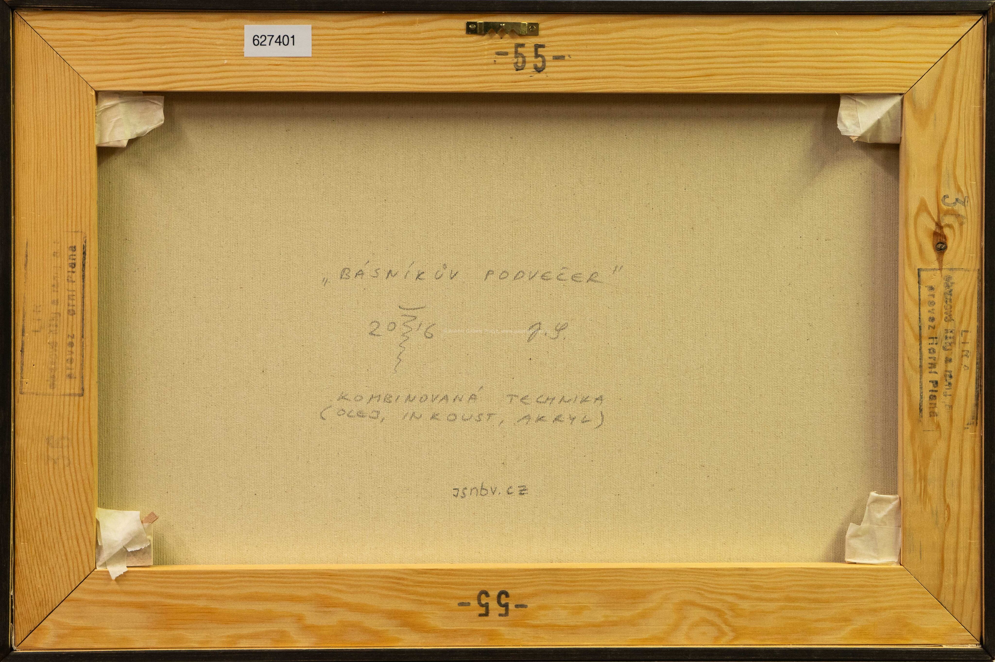 kombinovaná technika, olej/inkoust/akryl, rozměr 36 x 55 cm, značeno a datováno vlevo dole, rámováno
