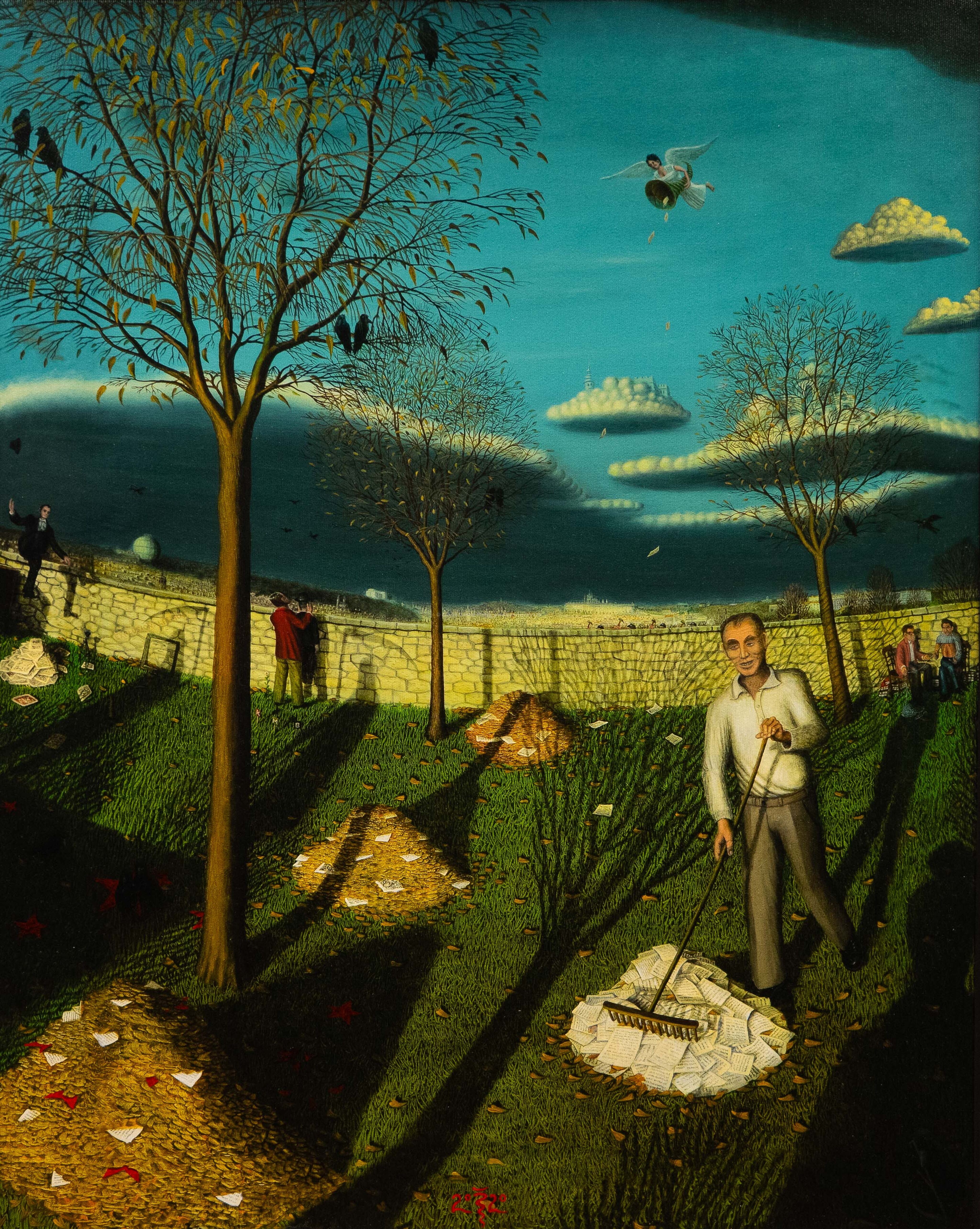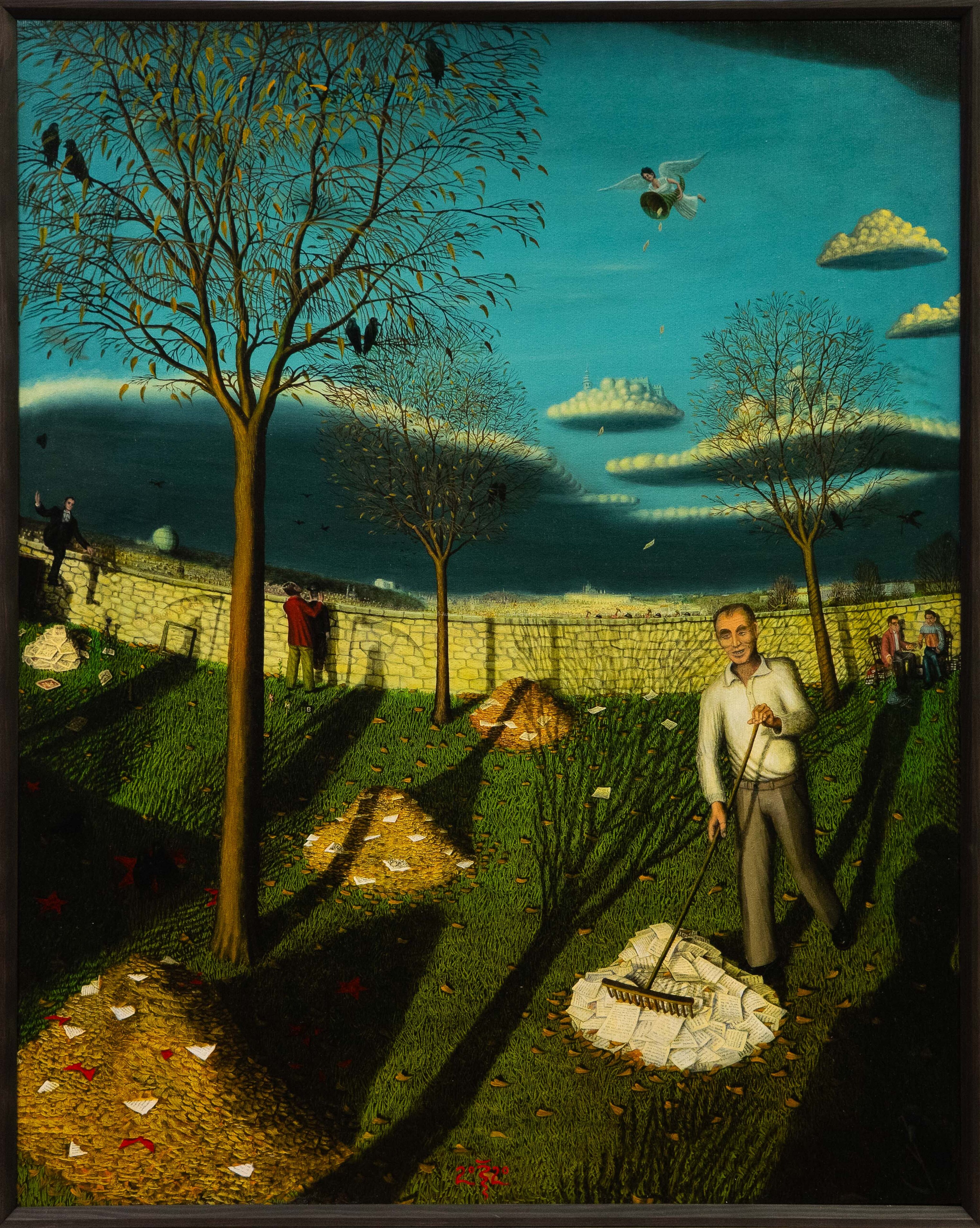 kombinovaná technika, olej/inkoust/akryl, rozměr 70 x 56 cm, značeno a datováno ve spodní části, rámováno