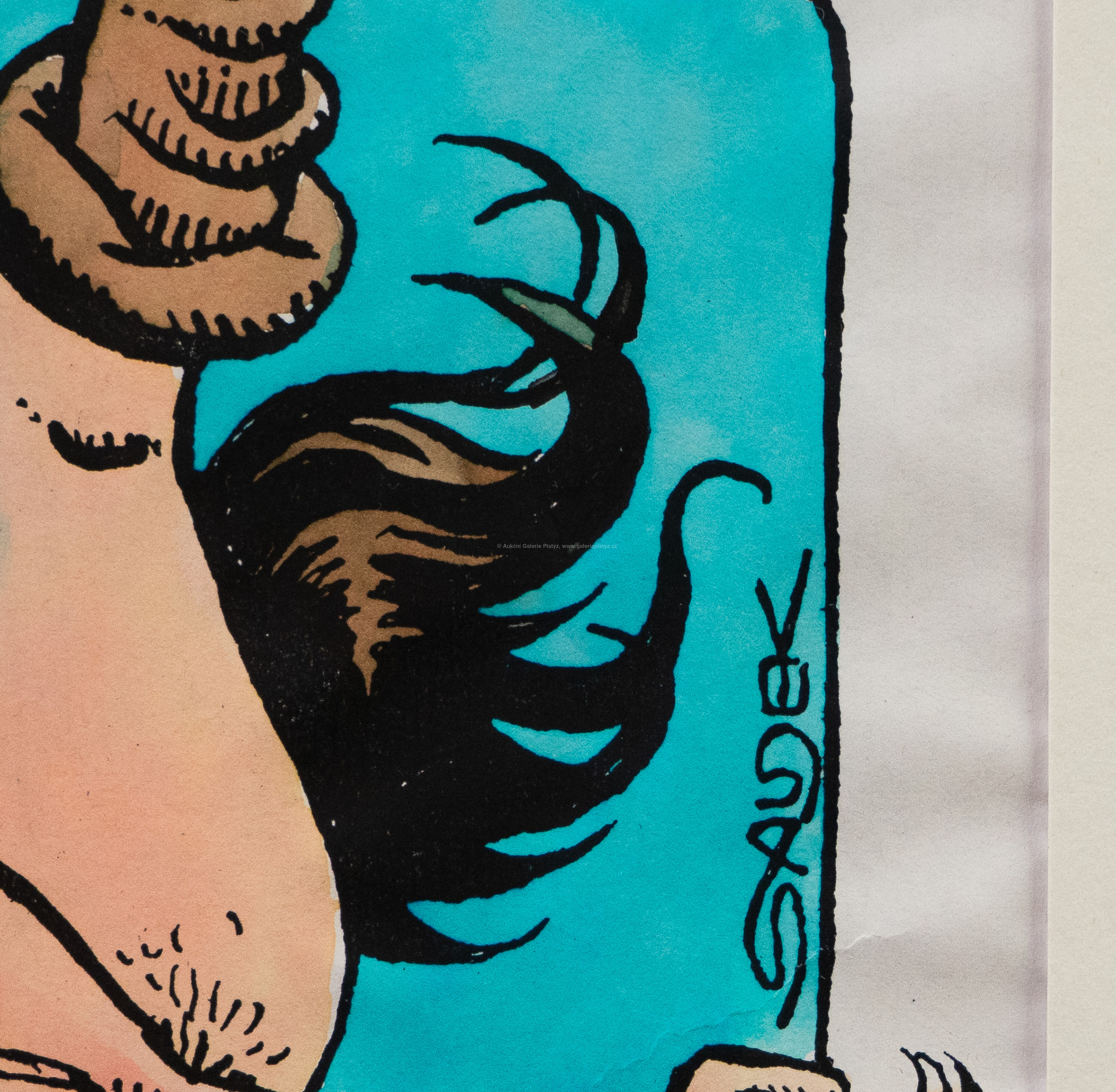 tuš/akvarel/papír, rozměr ve výřezu 17,5 x 17 cm, značeno na pravé straně, paspartováno, zaskleno, rámováno