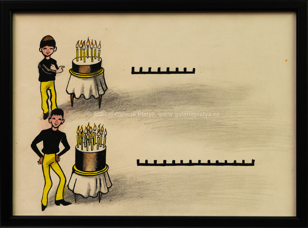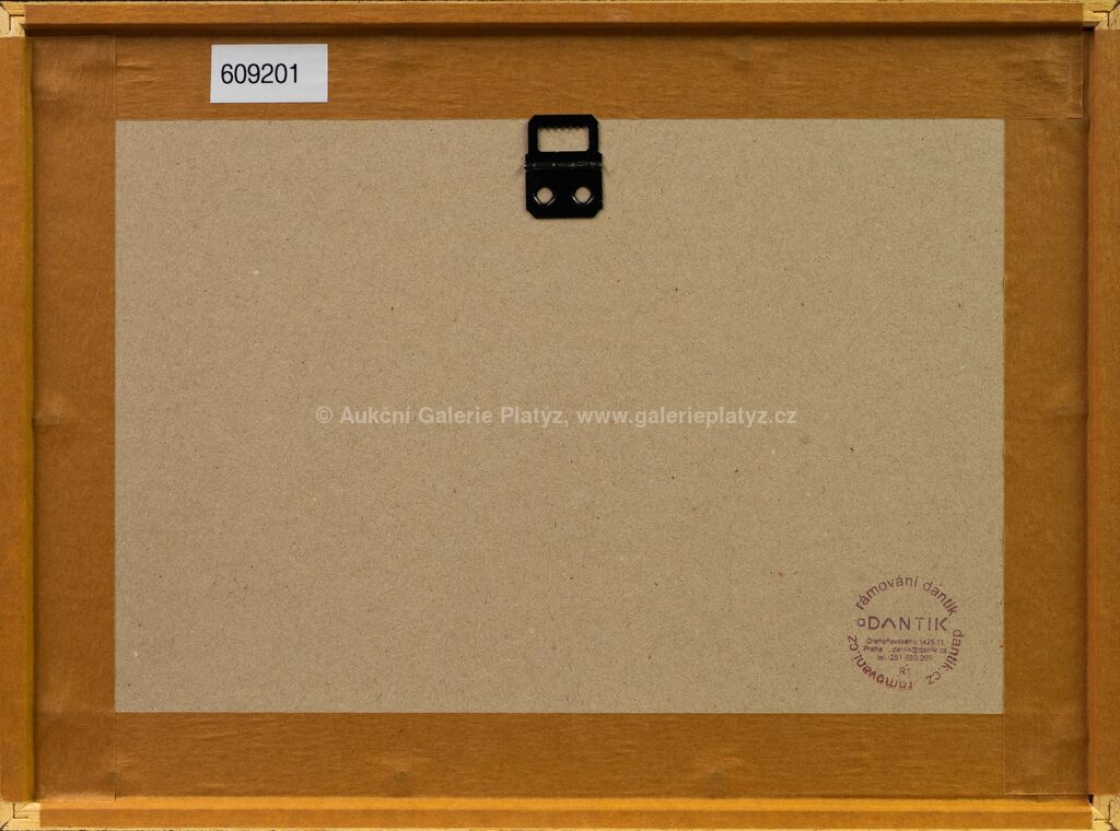 kombinovaná technika/papír, rozměr 24 x 33 cm, neznačeno, zaskleno, rámováno, dílo pochází z autorovy pozůstalosti