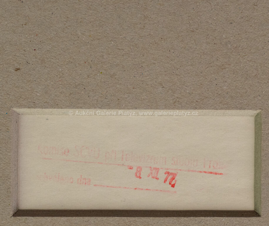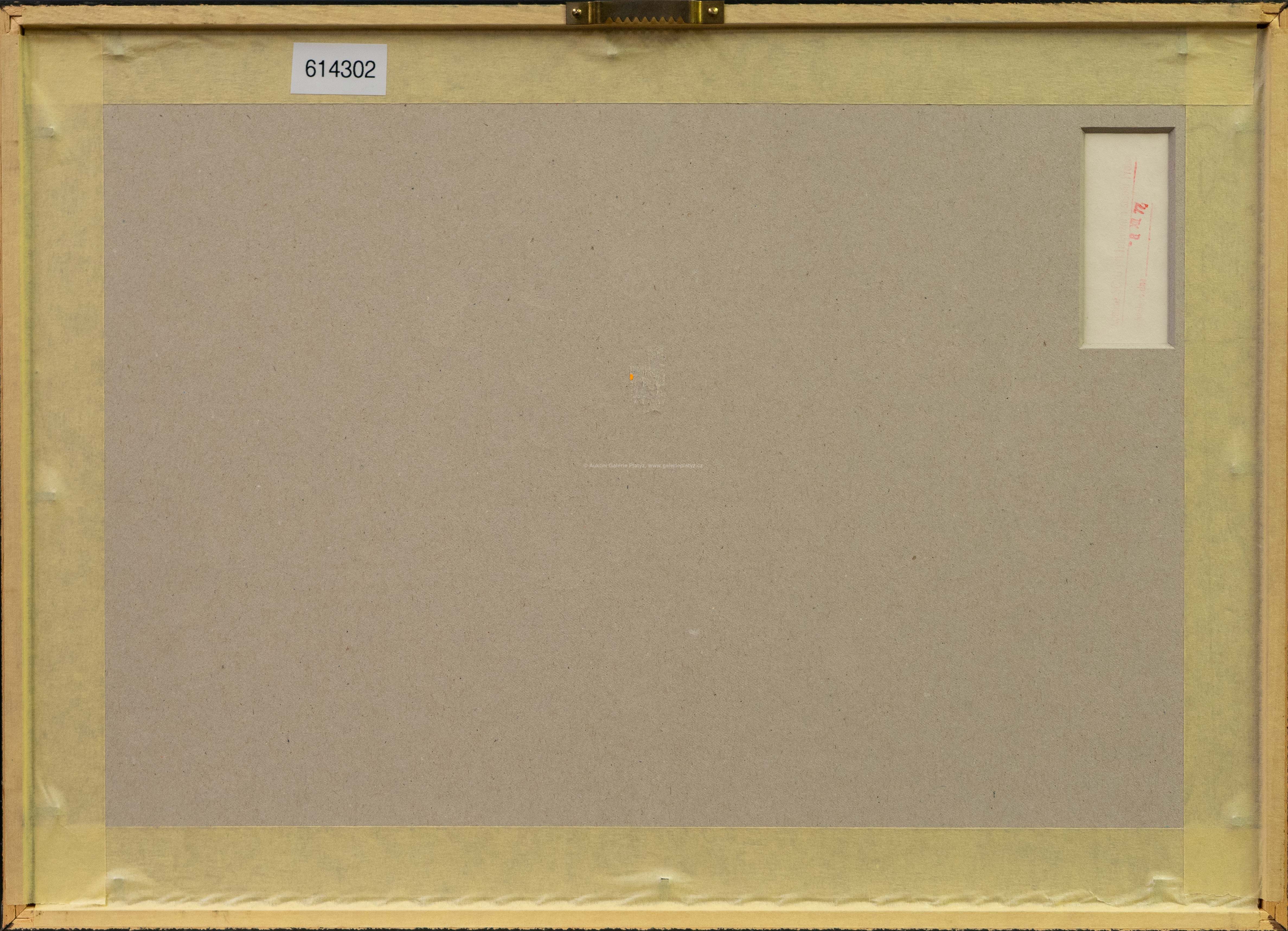 akvarel/tuš/papír, rozměr 31 x 44 cm, neznačeno, na zadní straně evidenční razítko, zaskleno, rámováno, oděrky na rámu