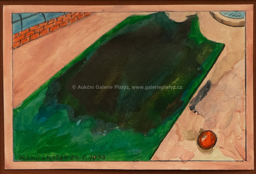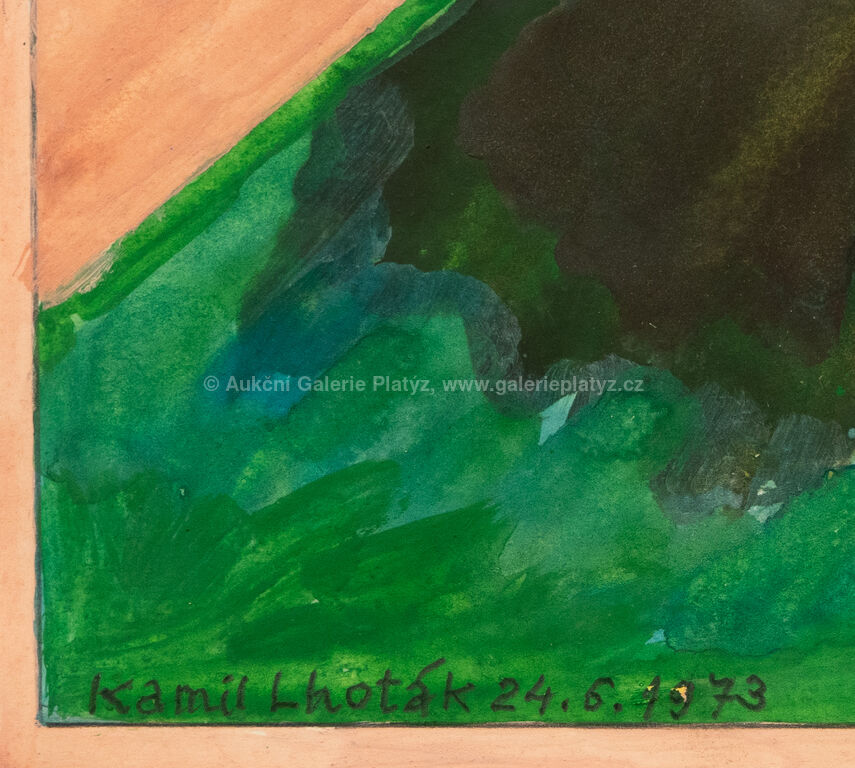 kvaš/papír, rozměr listu 12 x 18 cm, značeno a datováno vlevo dole, paspartováno, zaskleno, rámováno, publikováno publikováno L. Šteffek - Kamil Lhoták Grafické dílo v kontextu ostatní tvorby, str. 341