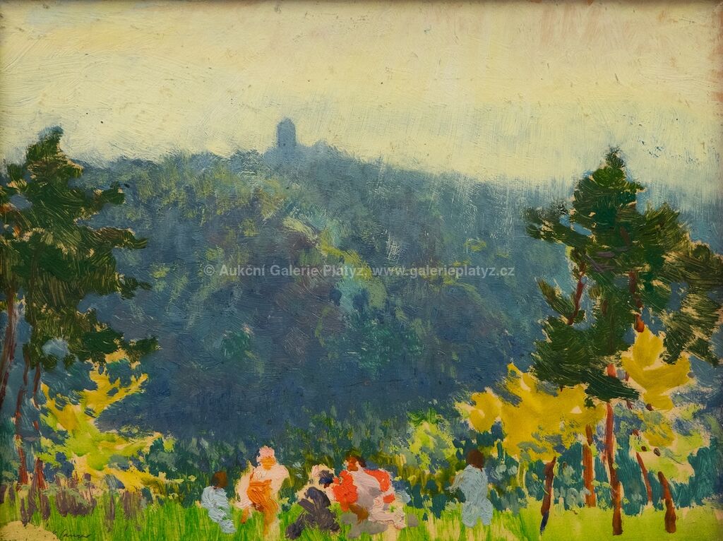 olej/karton, rozměr 26 x 34 cm, značeno vlevo dole, zaskleno, rámováno, oděrky na rámu