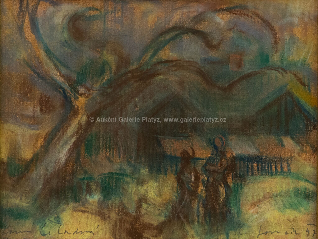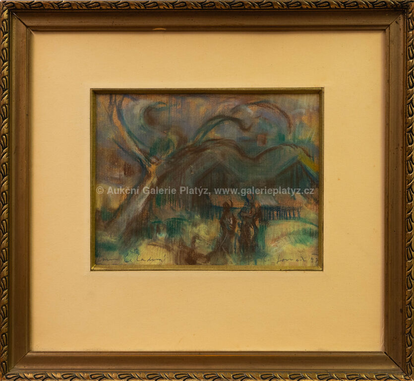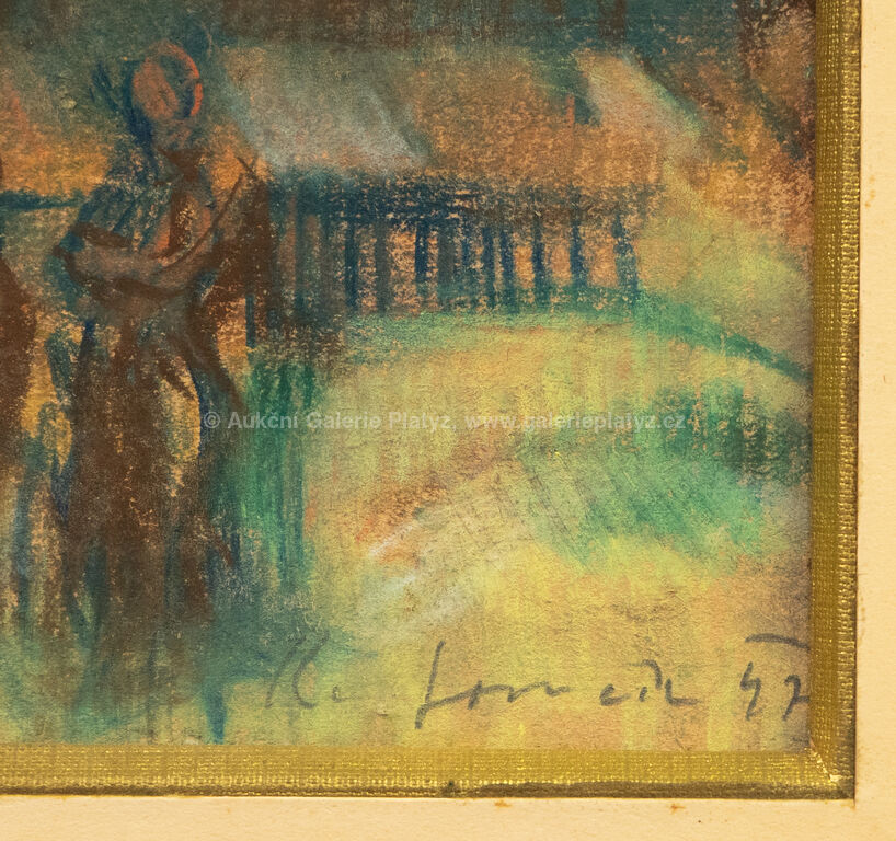 pastel/papír, rozměr ve výřezu 16 x 21 cm, značeno, datováno a popsáno ve spodní části, paspartováno, zaskleno muzeálním sklem, rámováno, oděrky na rámu