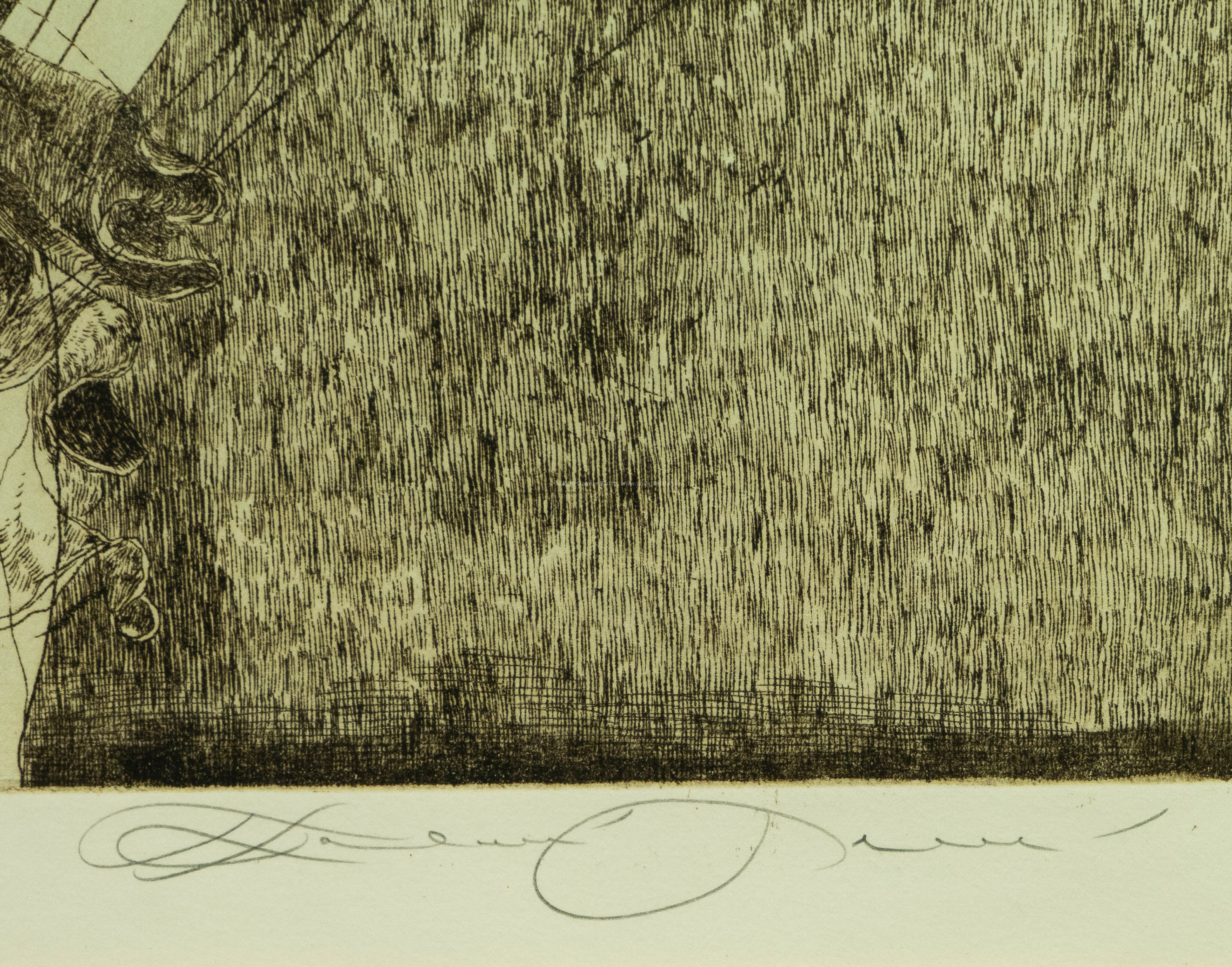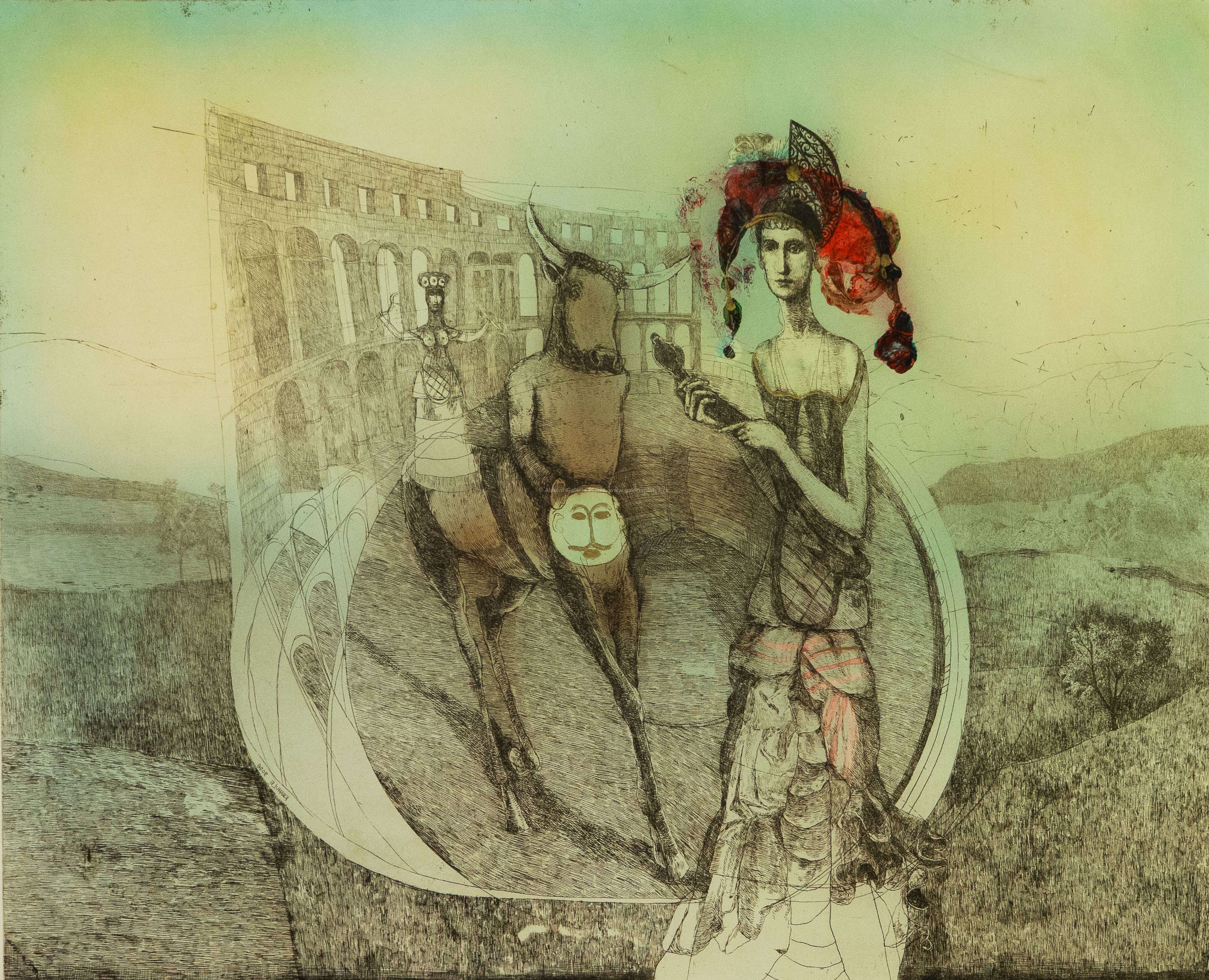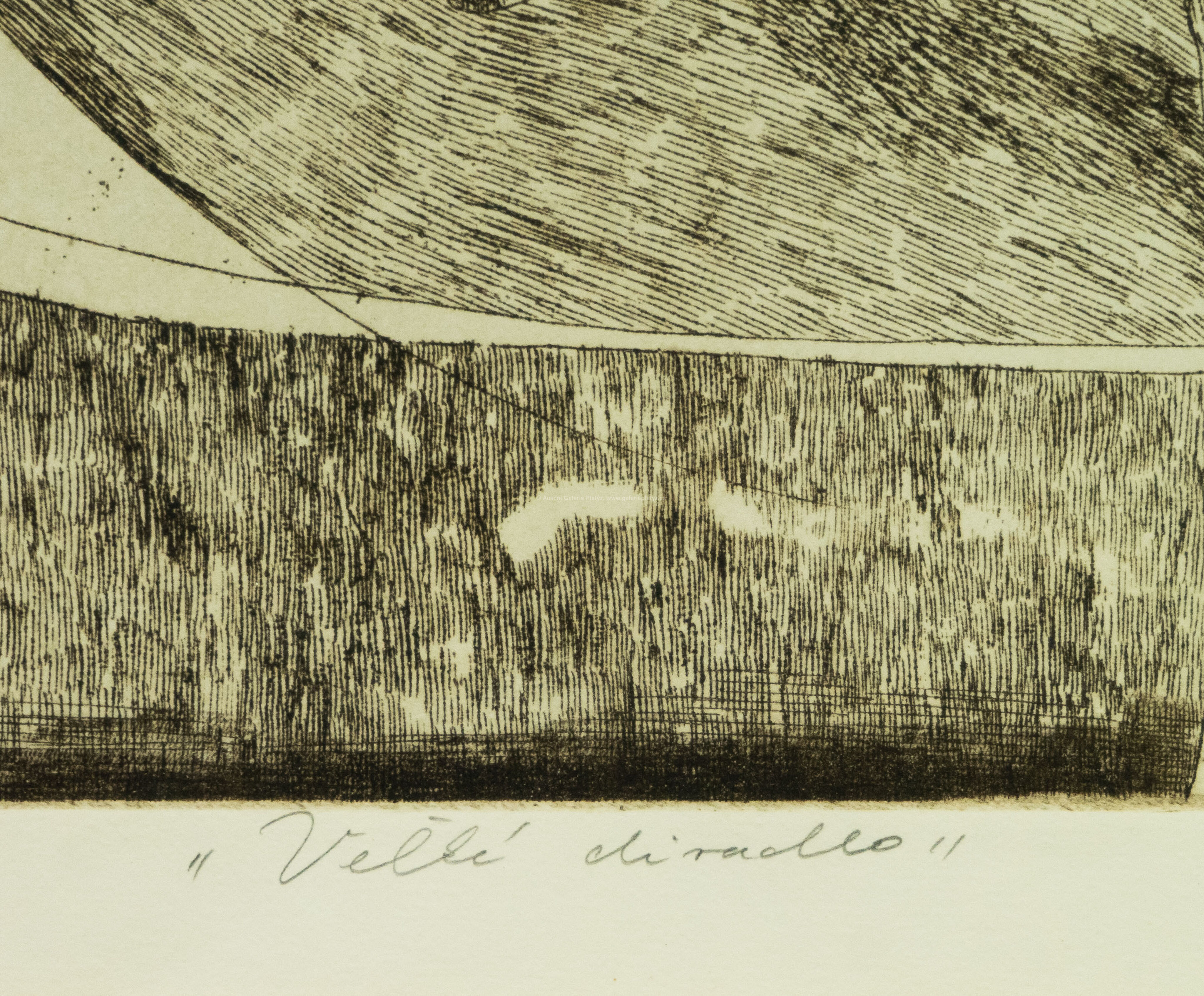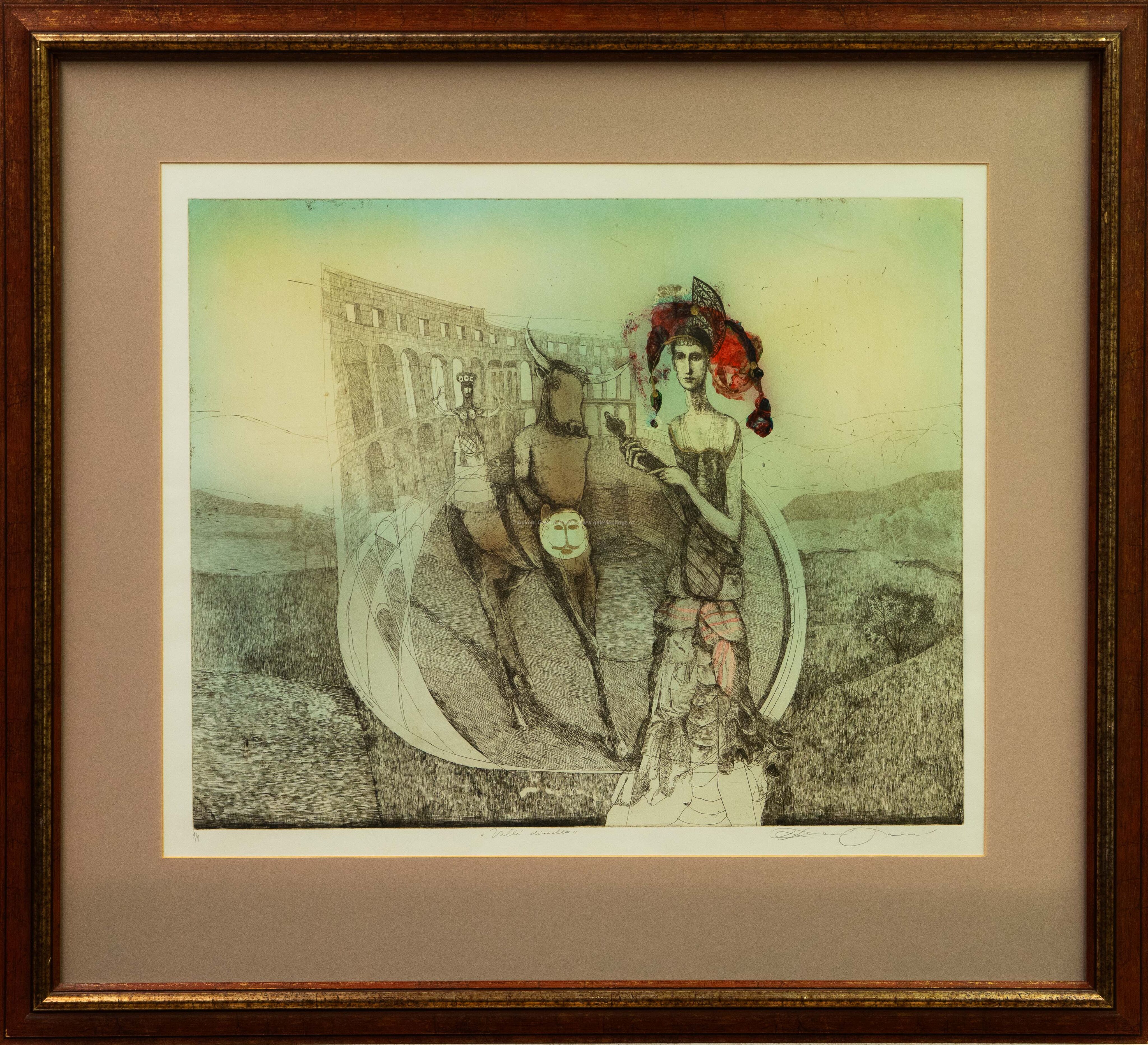 ručně kolorovaný lept/papír, 1/1, rozměr ve výřezu 53 x 63 cm, značeno, číslováno a popsáno ve spodní části, paspartováno, zaskleno, rámováno, oděrky na rámu
