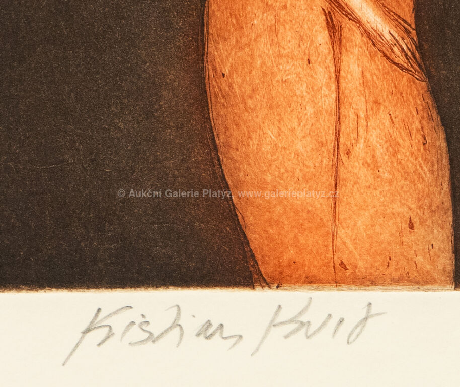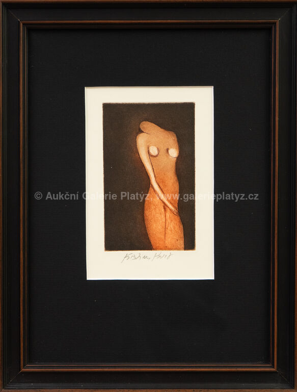 suchá jehla/papír, rozměr ve výřezu 19 x 12,5 cm, značeno ve spodní části, paspartováno, zaskleno, rámováno