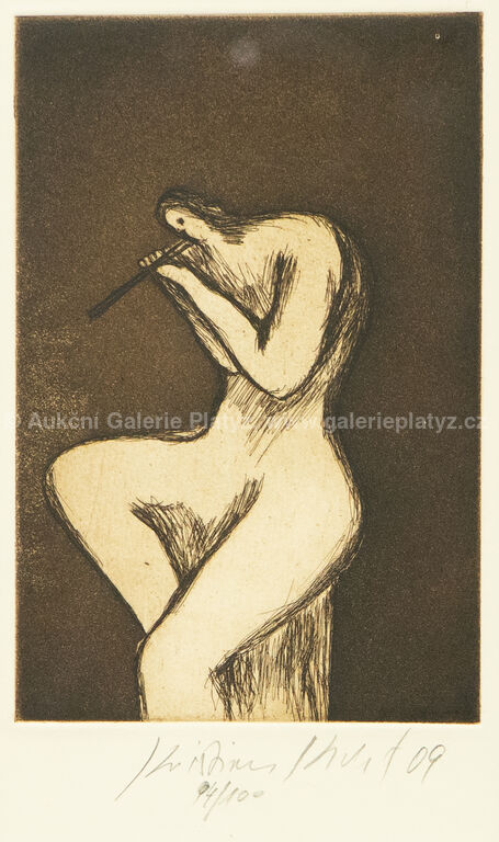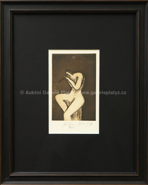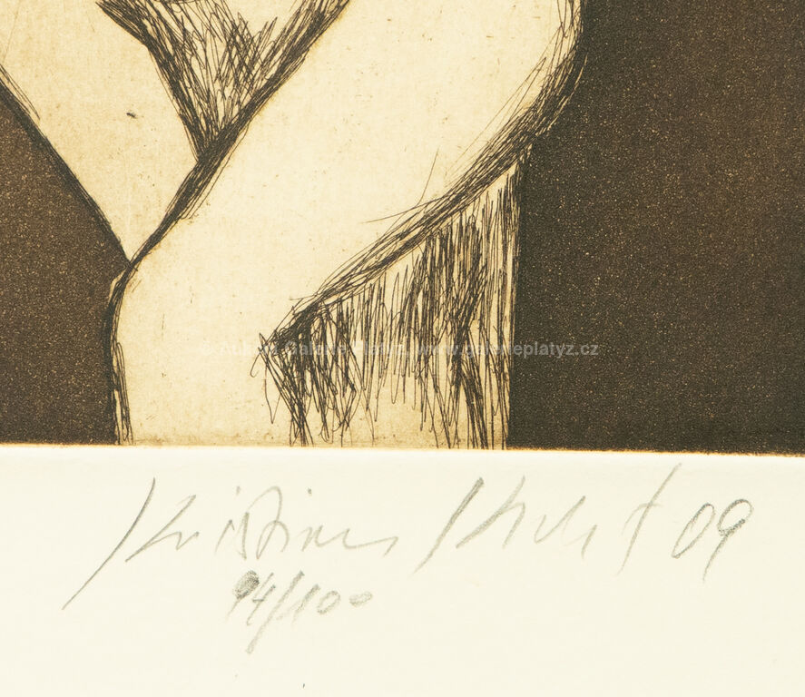 suchá jehla/papír, rozměr ve výřezu 18,5 x 11 cm, značeno, datováno a číslováno ve spodní části, paspartováno, zaskleno, rámováno