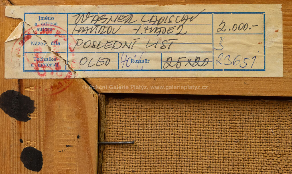 olej/sololit, rozměr 25 x 20 cm, značeno a datováno vpravo dole, rámováno, poškozený rám