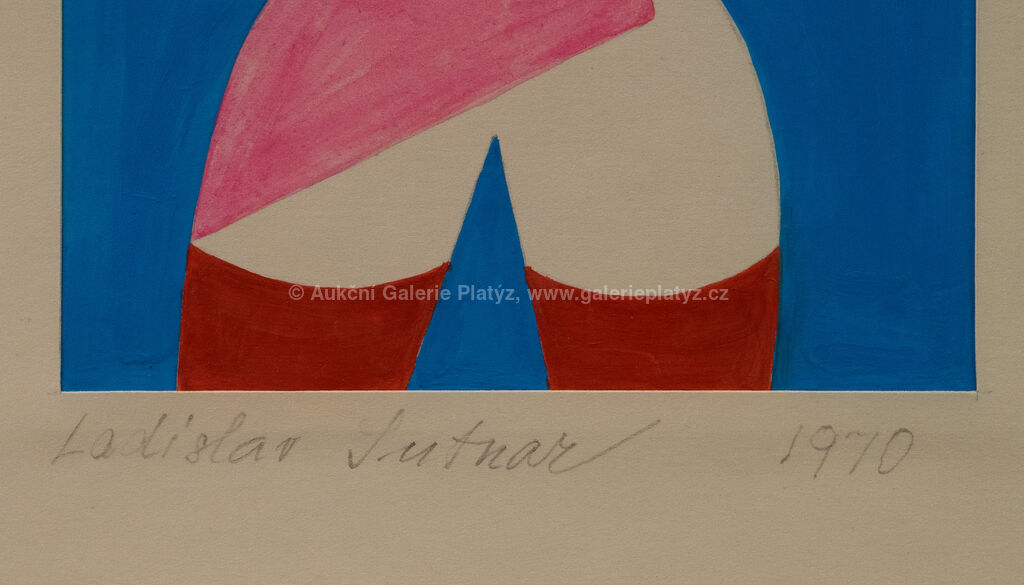 tempera/papír, rozměr ve výřezu 22,5 x 13 cm, značeno a datováno ve spodní části, popsáno v horní části, paspartováno, zaskleno, rámováno,po