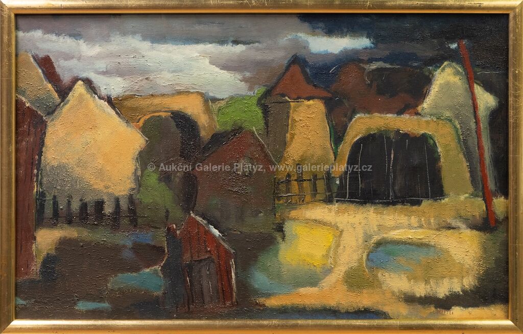 olej/plátno, rozměr 52 x 83 cm, značeno vpravo dole, rámováno, oděrky na rámu