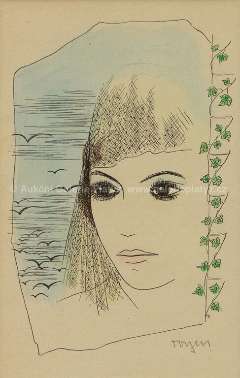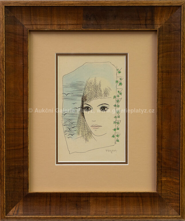 kolorovaná zinkografie, rozměr ve výřezu 19 x 12 cm, značeno vpravo dole, paspartováno, zaskleno, rámováno